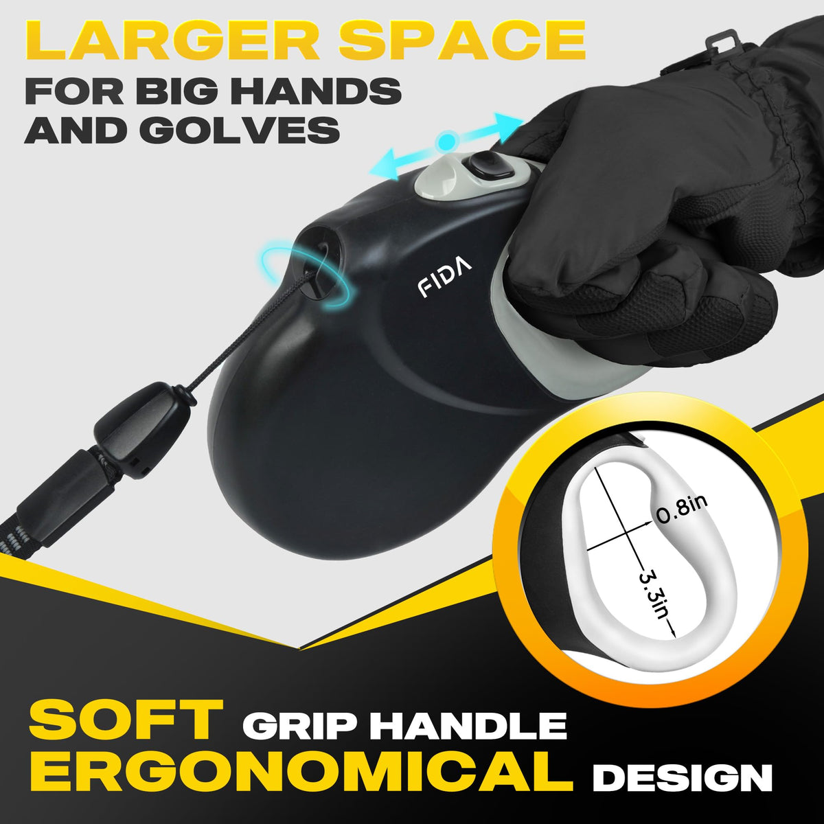 Fida Upgraded Retractable Dog Leash 30Ft, Cord Heavy Duty Dog Leash For Medium/Large Breed Up To 110 Lbs, 360 Tangle-Free Long Retract Dog Lead, Soft Grip, Large Handle One-Hand Brake, Black