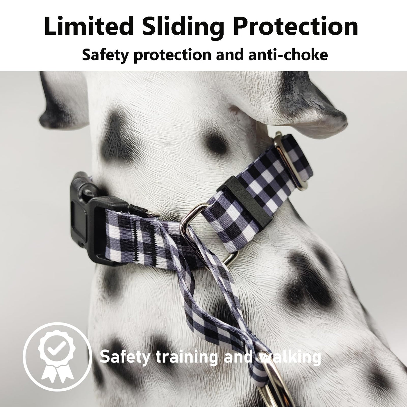 Fidohug Martingale Collar For Dogs With Buckle Adjustable Nylon Limited Slip Training Dog Collar (Black White Checkered, Medium)