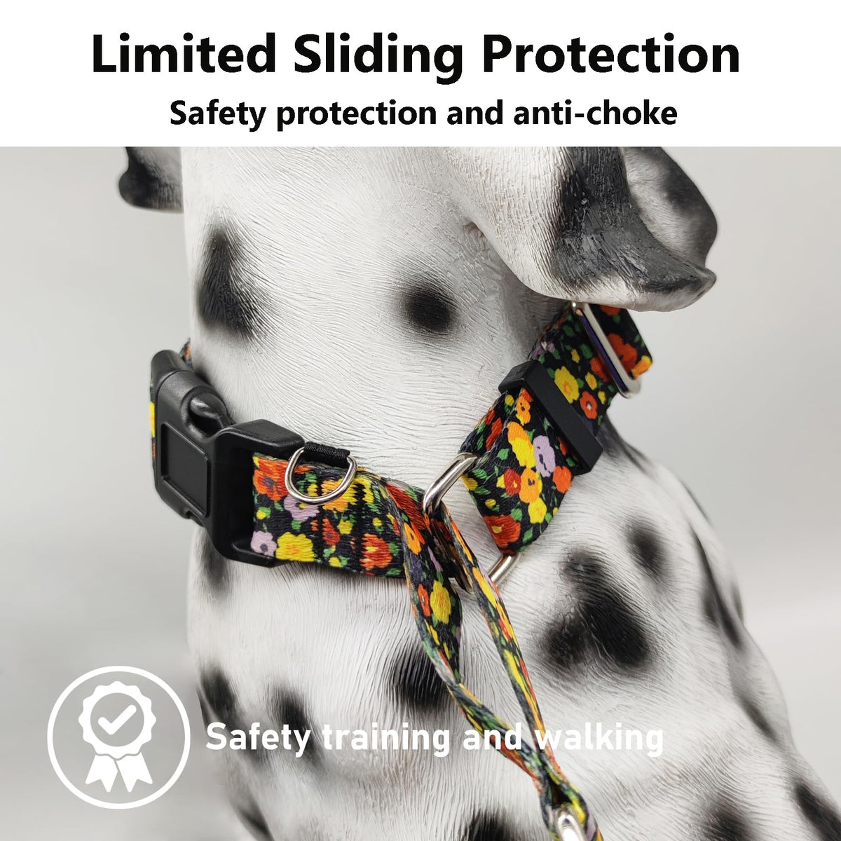 Matters Needing Attention: 1. Do Not Wear It For A Long Time: Avoid Letting Dogs Wear Slip Collars For A Long Time, Especially Indoors Or While Sleeping. 2. Check For Wear: Regularly Inspect The Martingale Collar For Signs Of Wear Or Damage And Replace It Promptly. 3. Avoid Overuse: Do Not Use No Pull Dog Collar During Intense Exercise Or Play With Dogs To Avoid Entanglement. 4. Through Proper Use And Appropriate Training, Nylon Escape Proof Dog Collars Can Become An Effective Tool For Managing Dog Behavior And Controlling Tension.Slip Collar Is Suitable For Small, Medium, And Large Dogs Size Information: S: 3/4''Width, Adjustable Length, 11''-14'' M: 1''Width, Adjustable Length, 13.4''-18'' L: 1''Width, Adjustable Length, 16''-24'' Brand Offer Different Styles And Colors, Including Purple, Orange, Pink, Black, Blue, Green, Yellow, White, Red, Including Flamingo, Strawberry, Butterfly, Checkered, Arrow, Plam Leaf, Floral, Flowers And Other Patterns.Our Breakaway Dog Collar Are Perfect For Dogs And Cats To Wear, And Are A Daily Pet Supplies For Dogs And The Best Gift For Pets. Such As Doberman Dachshund, German Shepherd, Husky, Pitbull, Bulldog, Frenchie Retriever, Greyhound, Foggy, Service, Deaf Dogs. Usage Scenarios: Suitable For Walking, Training, Work, Hunting, Camping, Etc