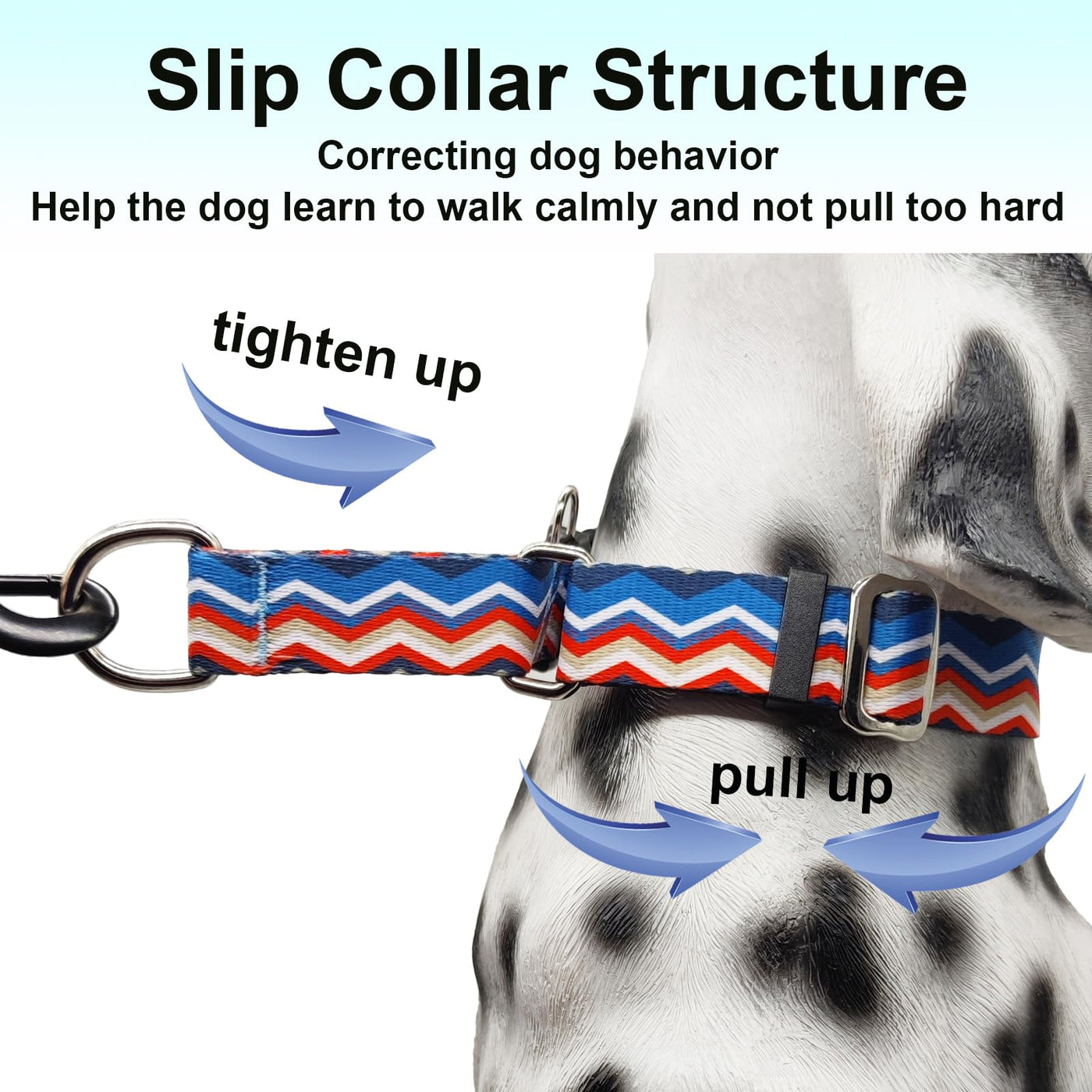 Matters Needing Attention: 1. Do Not Wear It For A Long Time: Avoid Letting Dogs Wear Slip Collars For A Long Time, Especially Indoors Or While Sleeping. 2. Check For Wear: Regularly Inspect The Martingale Collar For Signs Of Wear Or Damage And Replace It Promptly. 3. Avoid Overuse: Do Not Use No Pull Dog Collar During Intense Exercise Or Play With Dogs To Avoid Entanglement. 4. Through Proper Use And Appropriate Training, Nylon Escape Proof Dog Collars Can Become An Effective Tool For Managing Dog Behavior And Controlling Tension.Slip Collar Is Suitable For Small, Medium, And Large Dogs Size Information: S: 3/4''Width, Adjustable Length, 11''-14'' M: 1''Width, Adjustable Length, 13.4''-18'' L: 1''Width, Adjustable Length, 16''-24'' Brand Offer Different Styles And Colors, Including Purple, Orange, Pink, Black, Blue, Green, Yellow, White, Red, Including Flamingo, Strawberry, Butterfly, Checkered, Arrow, Plam Leaf, Floral, Flowers And Other Patterns.Our Breakaway Dog Collar Are Perfect For Dogs And Cats To Wear, And Are A Daily Pet Supplies For Dogs And The Best Gift For Pets. Such As Doberman Dachshund, German Shepherd, Husky, Pitbull, Bulldog, Frenchie Retriever, Greyhound, Foggy, Service, Deaf Dogs. Usage Scenarios: Suitable For Walking, Training, Work, Hunting, Camping, Etc