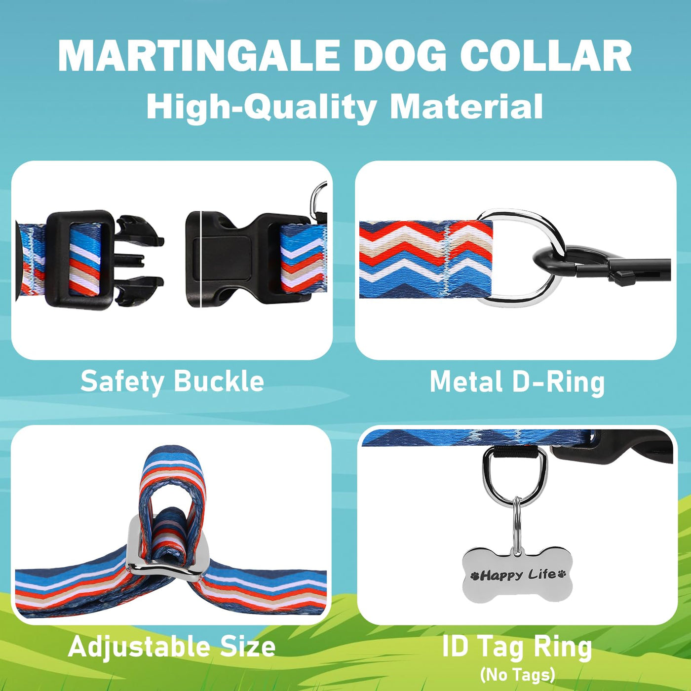 Fidohug Martingale Collar For Dogs With Buckle Adjustable Nylon Wave Slip No Pull Training Dog Collars (Red Blue Arrow, Large)