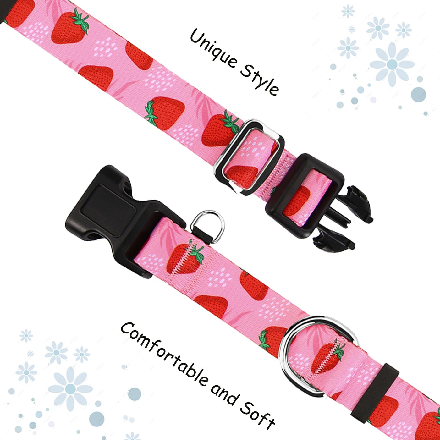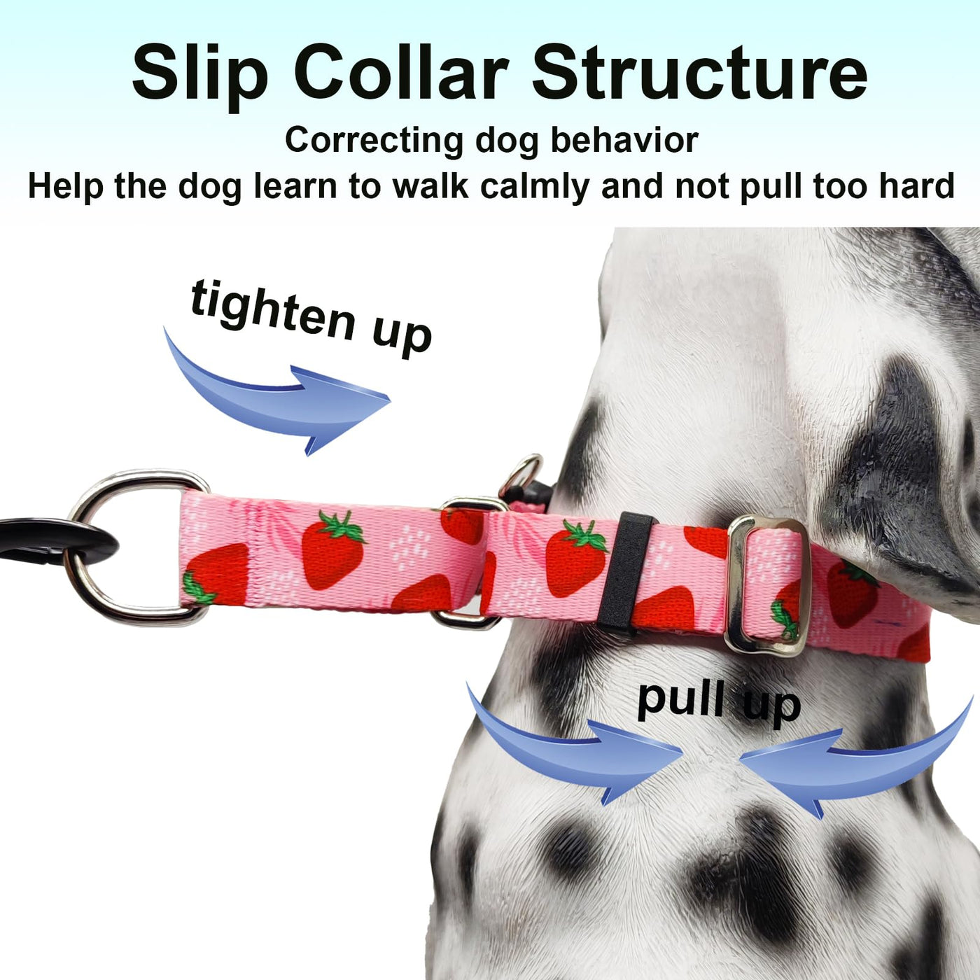 Matters Needing Attention: 1. Do Not Wear It For A Long Time: Avoid Letting Dogs Wear Slip Collars For A Long Time, Especially Indoors Or While Sleeping. 2. Check For Wear: Regularly Inspect The Martingale Collar For Signs Of Wear Or Damage And Replace It Promptly. 3. Avoid Overuse: Do Not Use No Pull Dog Collar During Intense Exercise Or Play With Dogs To Avoid Entanglement. 4. Through Proper Use And Appropriate Training, Nylon Escape Proof Dog Collars Can Become An Effective Tool For Managing Dog Behavior And Controlling Tension.Slip Collar Is Suitable For Small, Medium, And Large Dogs Size Information: S: 3/4'Width, Adjustable Length, 11'-14' M: 1'Width, Adjustable Length, 13.4'-18' L: 1'Width, Adjustable Length, 16'-24' Brand Offer Different Styles And Colors, Including Purple, Orange, Pink, Black, Blue, Green, Yellow, White, Red, Including Flamingo, Strawberry, Butterfly, Checkered, Arrow, Plam Leaf, Floral, Flowers And Other Patterns.Our Breakaway Dog Collar Are Perfect For Dogs And Cats To Wear, And Are A Daily Pet Supplies For Dogs And The Best Gift For Pets. Such As Doberman Dachshund, German Shepherd, Husky, Pitbull, Bulldog, Frenchie Retriever, Greyhound, Foggy, Service, Deaf Dogs. Usage Scenarios: Suitable For Walking, Training, Work, Hunting, Camping, Etc