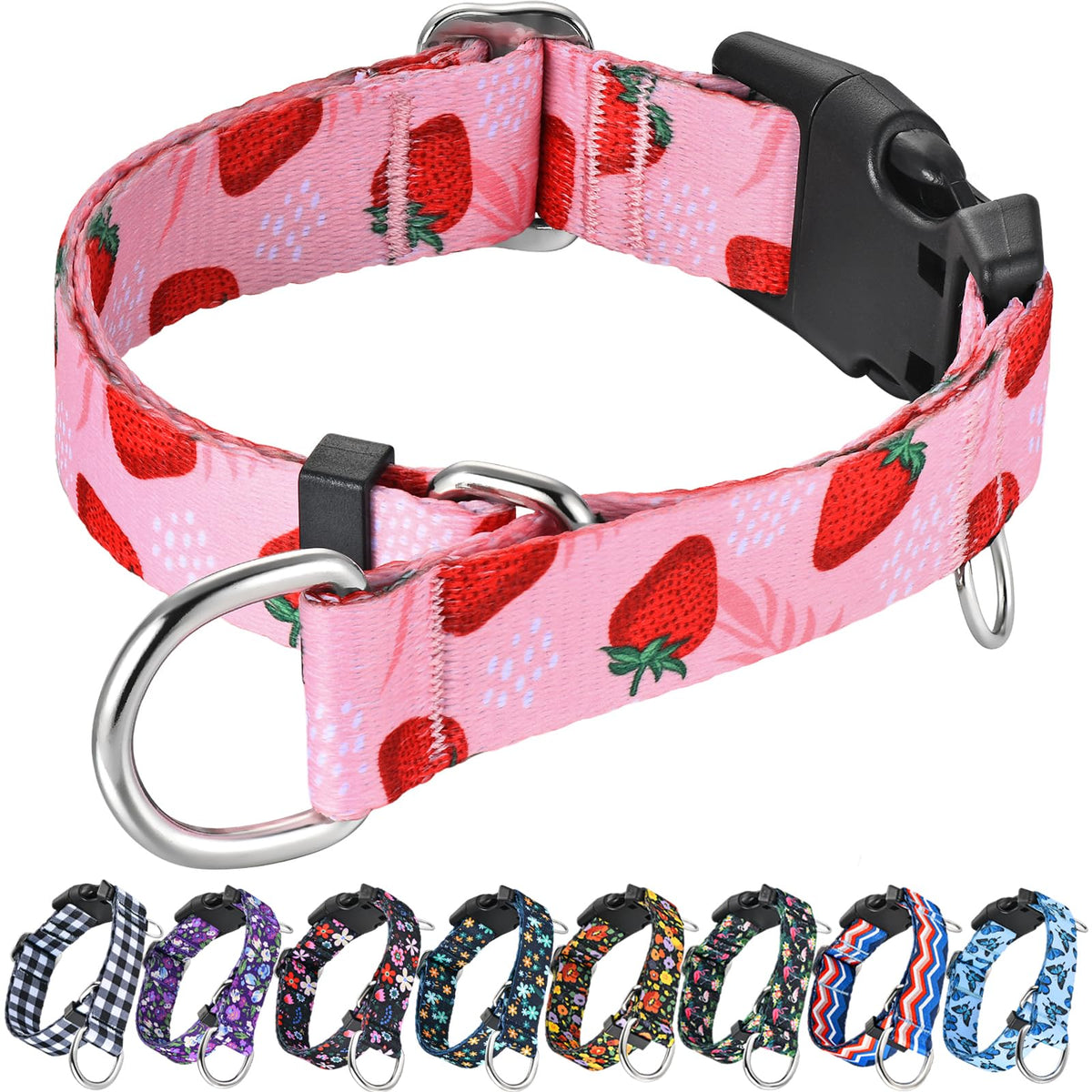 Fidohug Martingale Collar For Dogs With Pink Strawberry Pattern No Pull Training Nylon Limited Slip Collars For Medium Dogs