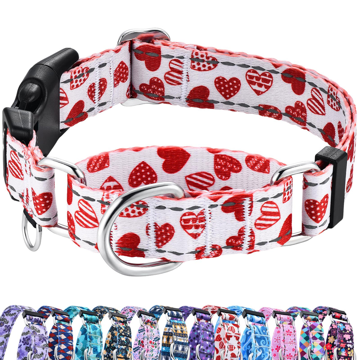 Matters Needing Attention: 1. Do Not Wear It For A Long Time: Avoid Letting Dogs Wear Martingale Collars For A Long Time, Especially Indoors Or While Sleeping. 2. Check For Wear: Regularly Inspect The Dog Martingale Collar For Signs Of Wear Or Damage And Replace It Promptly. 3. Avoid Overuse: Do Not Use Dog Collar Martingale During Intense Exercise Or Play With Dogs To Avoid Entanglement. 4. Through Proper Use And Appropriate Training, Nylon Martingale Dog Collars Can Become An Effective Tool For Managing Dog Behavior And Controlling Tension.Reflective Martingale Collar Is Suitable For Small, Medium, And Large Dogs Size Information: Xs: 3/5''Width, Adjustable Length, 10.3''-13'' S: 3/4''Width, Adjustable Length, 12.2''-15.7'' M: 1''Width, Adjustable Length, 14.3''-19'' L: 1''Width, Adjustable Length, 18''-26.3'' Brand Offer Different Styles And Colors, Including Purple, Lavender, Pink, Black, Blue, Green, Turquoise, Yellow, Multicoloured, White, Red, Including Stripe, Argyle, Geometric, Polka Dot, Waves, Shark, Starfish, Shell, Daisy, Floral, Flowers And Other Patterns.Our Breakaway Dog Collar Are Perfect For Dogs And Cats To Wear, And Are A Daily Pet Supplies For Dogs And The Best Gift For Pets. Such As Doberman Dachshund, German Shepherd, Husky, Pitbull, Bulldog, Frenchie Retriever, Greyhound, Foggy, Service, Deaf Dogs. Usage Scenarios: Suitable For Walking, Training, Work, Hunting, Camping, Etc