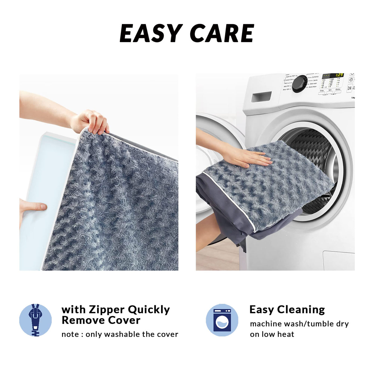 ??Memory Foam - The large orthopedic dog bed is filled with double layers of memory foam the top blue sponge is soft and the bottom white sponge is supportive. And the memory foam can gradually soften as the dog's body temperature rises evenly supports the dog's whole body keeps the dog in the most comfortable posture and effectively relieves the dog's fatigue and the bone and joint pain of the elderly dog!