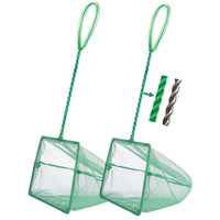 Features:1. This fish tank net is soft and durable, can be used to catch/transfer fish without hurting them, also can be used as fish tank cleaning tool to quickly clear the debris in the fish tank. 2. Soft nylon mesh net wont hurt your fish, perfect for safely transferring delicate fish, strong enough for removing debris and leaves.3. Simply clean the mesh with water, air-dry in ventilated place. Specifications:Material: Plastic coated stainless steel handle, soft nylon meshPackage incluing: 2 x Aquarium Fish NetMultiple Sizes: SIZE 4 inch: Net measures 4 L x 3.15 W x 9.6 Handle, with a 3.9 deep pocket.SIZE 5 inch: Net measures 5 L x 4.1 W x 10.2 Handle, with a 3.5 deep pocket.SIZE 6 inch: Net measures 6 L x 5 W x 11 Handle, with a 5.5 deep pocket. Kindly remind: Please have a reference to the size map before purchase, choose the suitable size for your fish and fish tank.