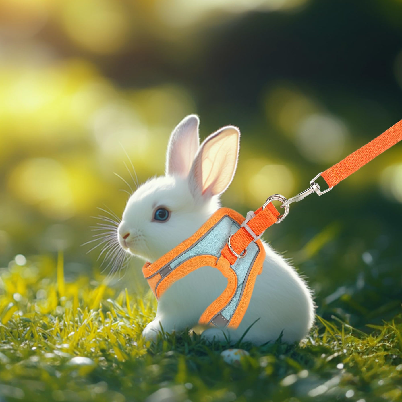 Filhome Adjustable Rabbit Harness And Leash Set Double Buckle With Reflective Strips Soft Bunny Breathable Vest Harness For Kitt