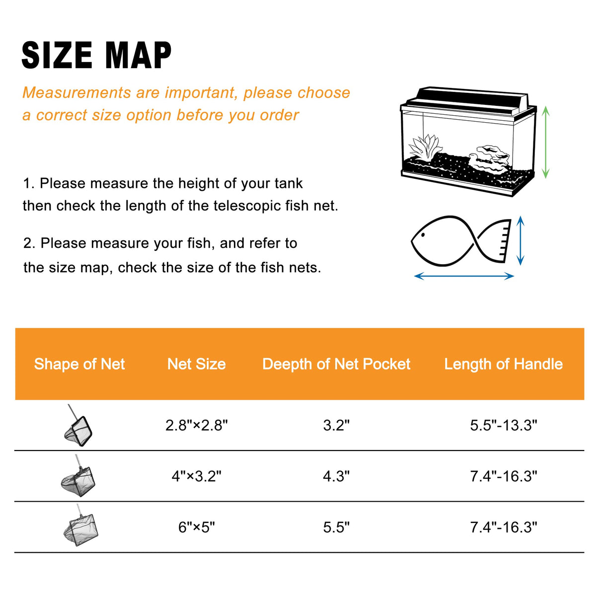 Kindly remind: Please have a reference to the size map before purchase, choose the suitable size for your fish and fish tank.