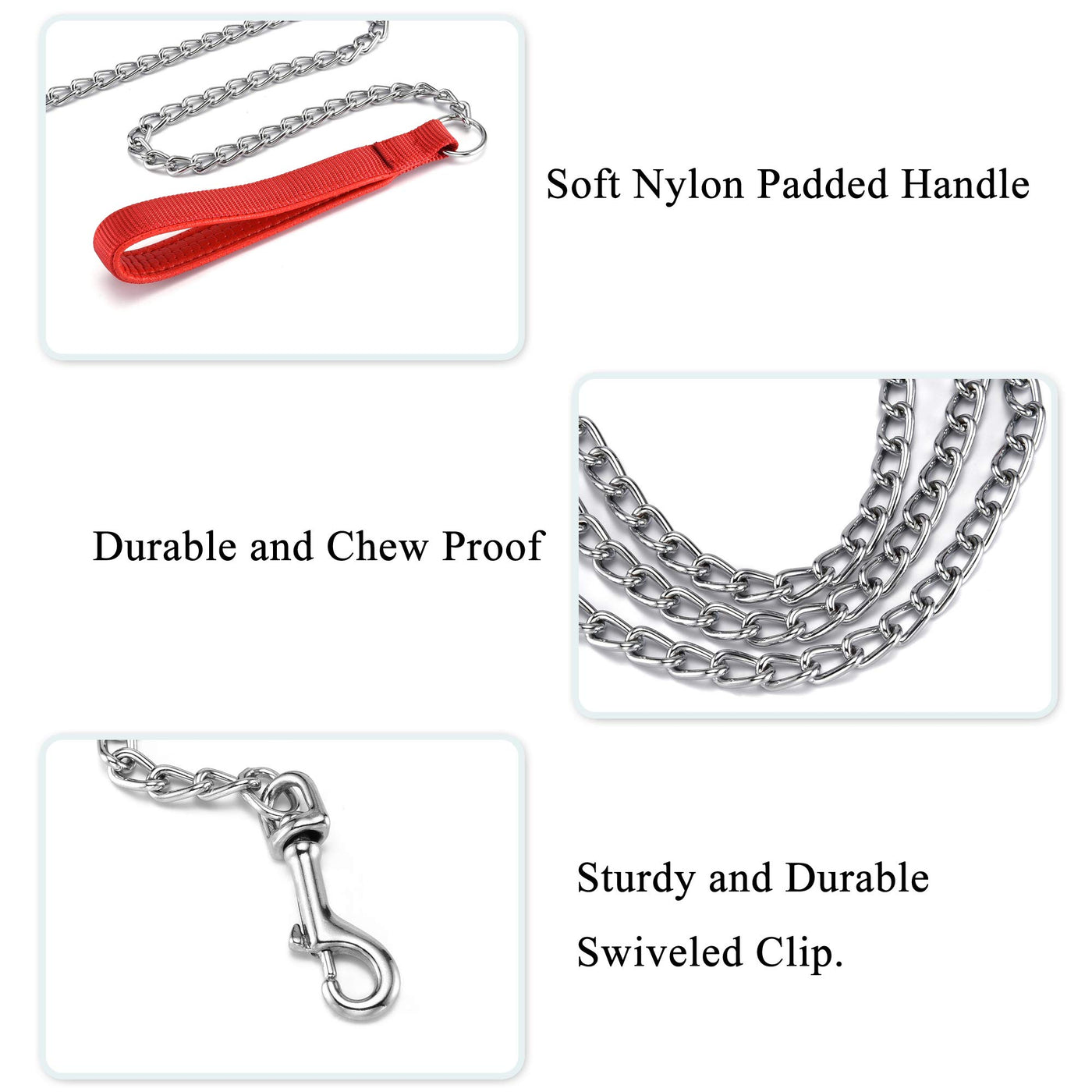 Filhome Metal Dog Leash Chew Proof Dog Chain Leash 4Ft Heavy Duty Sturdy Pet Dog Leash With Red Padded Handle For Large Medium Dogs