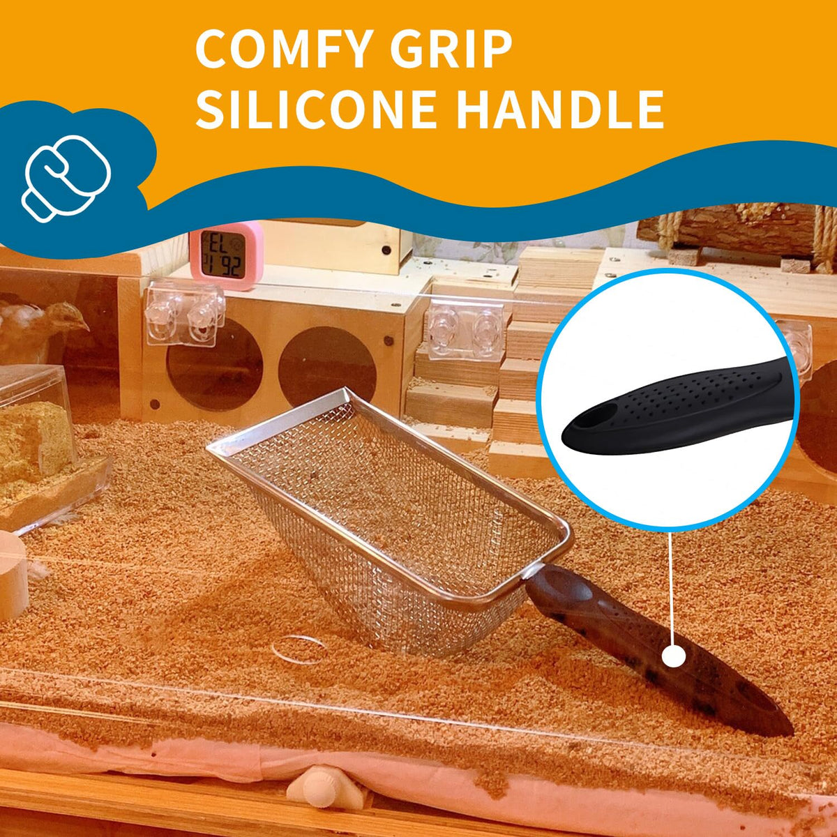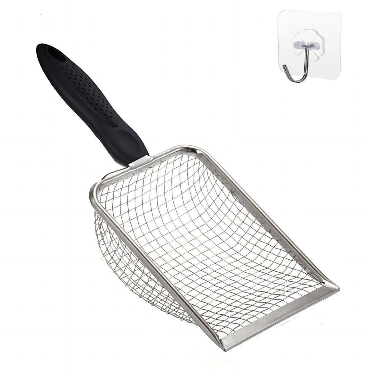 Firsal Cat Litter Scooper With Holder,Sturdy Litter Cleaner Corner Shovel,Stainless Steel Mesh Litter Scoop,Easy To Clean,Non-Sl