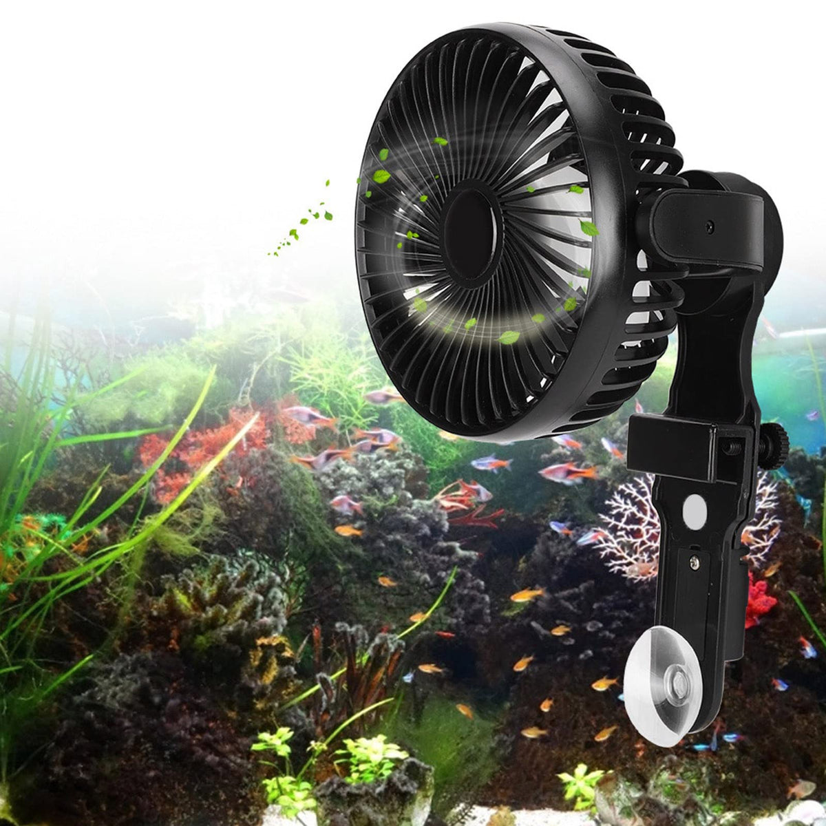 Q: How does the Fish Cooling Fan help maintain aquarium temperature?A: The Fish Cooling Fan is designed to effectively lower the temperature in your aquarium, ensuring a stable environment for your fish. By circulating air above the water surface, it reduces heat buildup, making it ideal for hot weather or heated aquariums.