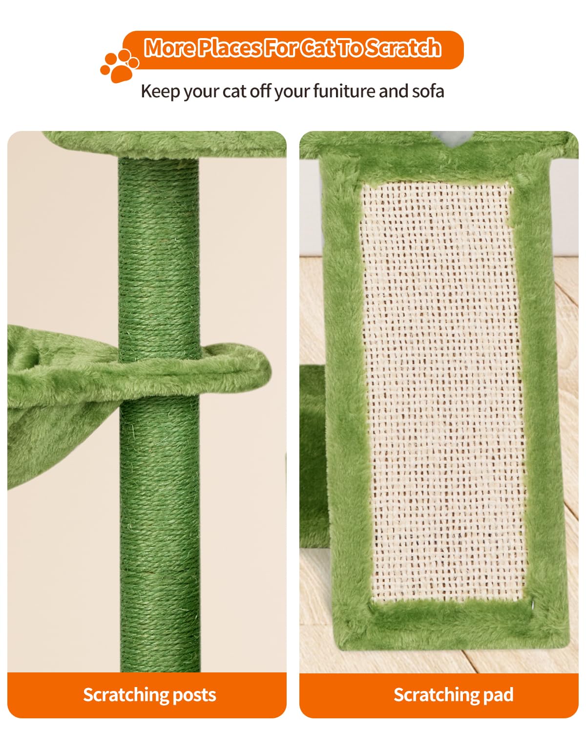 Fish&Nap Cute Cat Tree Kitten Cat Tower For Indoor Cat Condo Sisal Scratching Posts With Jump Platform Cat Furniture Activity Center Play House Green
