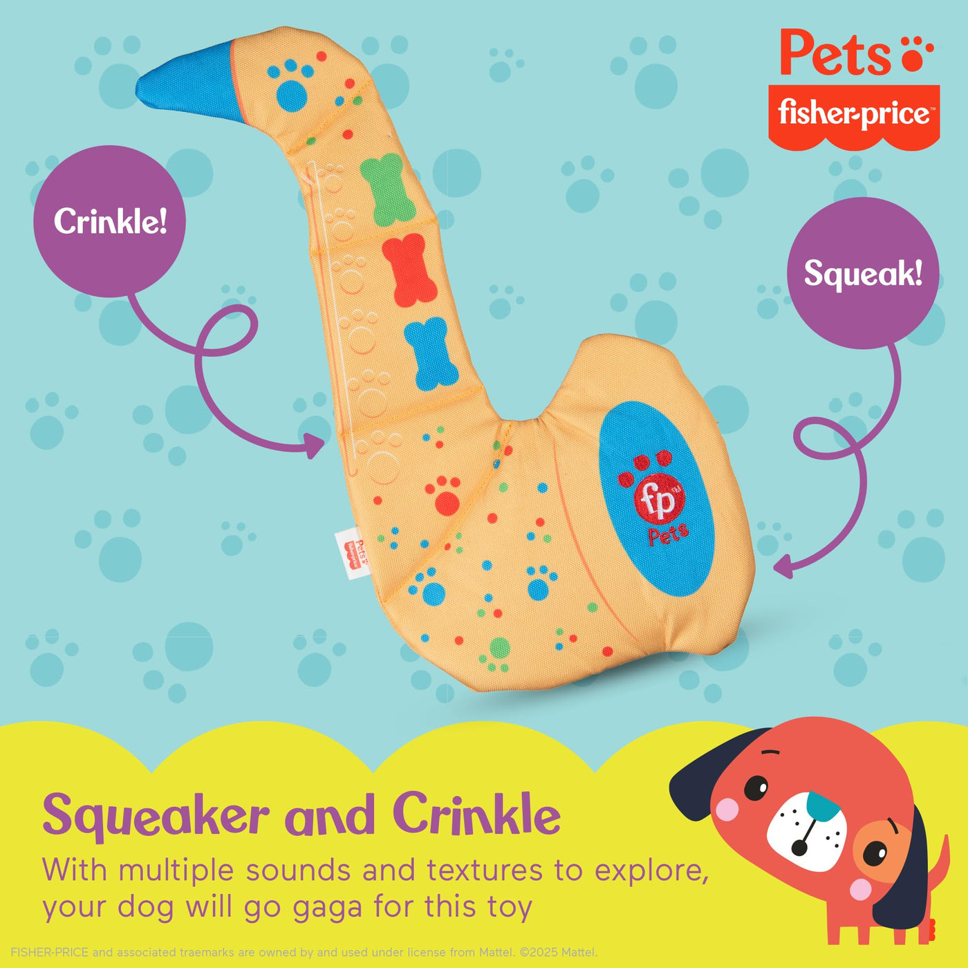 Satisfy your pups need to gnaw in a smart and mess-less way! And if your pup rips it open, a bonus toy inside continues the play! Weve carefully crafted the Fisher-Price Pets SaxoBone with playful pups in mind. From the unique overall shape to the versatile functionality, the Fisher-Price Pets SaxoBone is designed to keep small, but active, mouths engaged in exploration in a safe and healthy way. With a secret toy inside that is revealed if your dog shreds it, the SaxoBone is great for reigniting puppies curiosity with each use, keeping them engaged for hours. After all, we recognize that play, interaction, and comfort are fundamental keystones in the growth and development of a healthy, happy puppy! Fisher-Price Pets serves up playful practicality with a heavy dose of nostalgia in a collection of pet development products that get you right in the feels. Our toys are fueled by the boundless energy of a little pup in motion, just begging for you to come play.