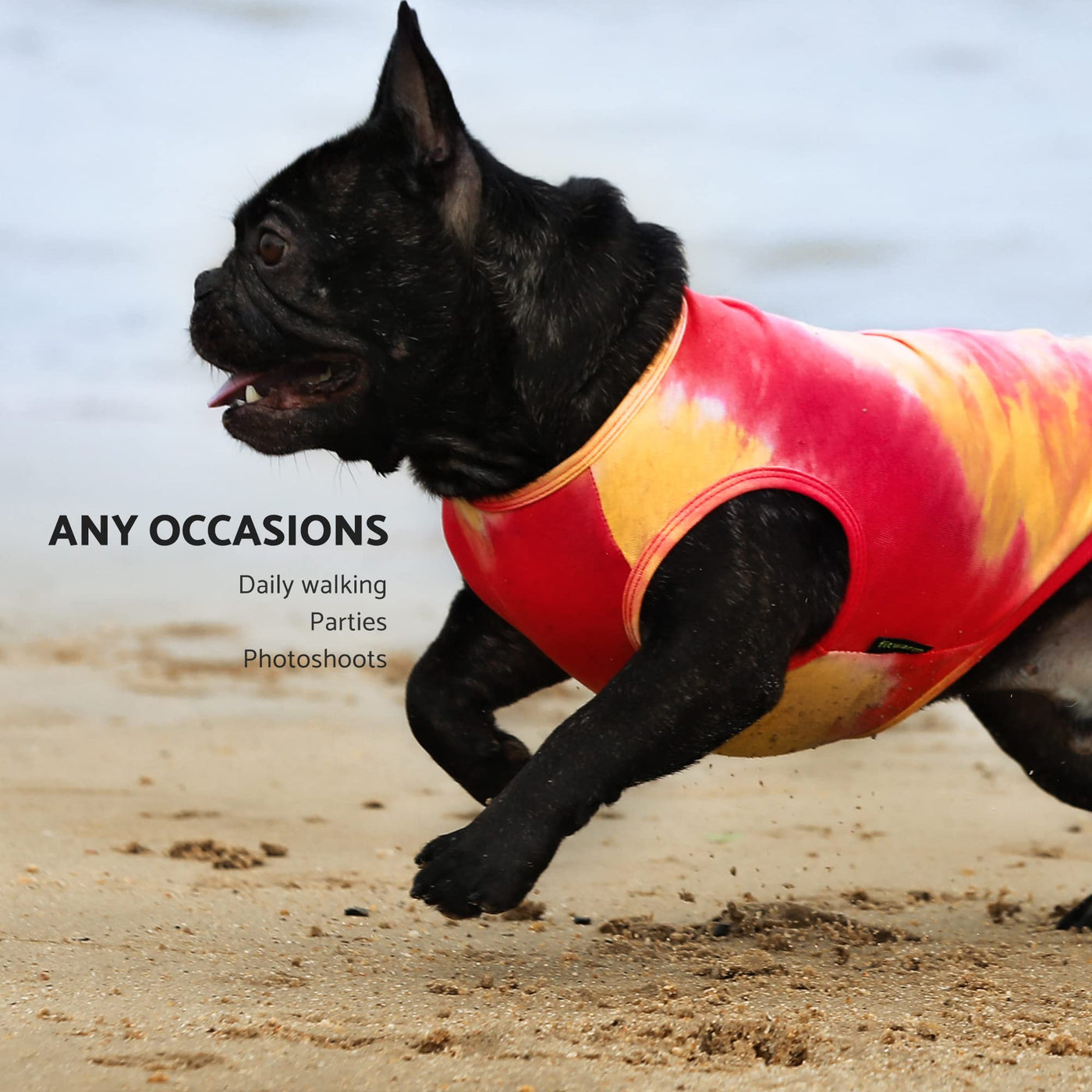 Fitwarm 2-Pack Dog Shirt, Tie Dye Dog Clothes For Small Dogs, Cotton Sleeveless Vest T-Shirt, Cat Apparel, Yellow Blue, Medium