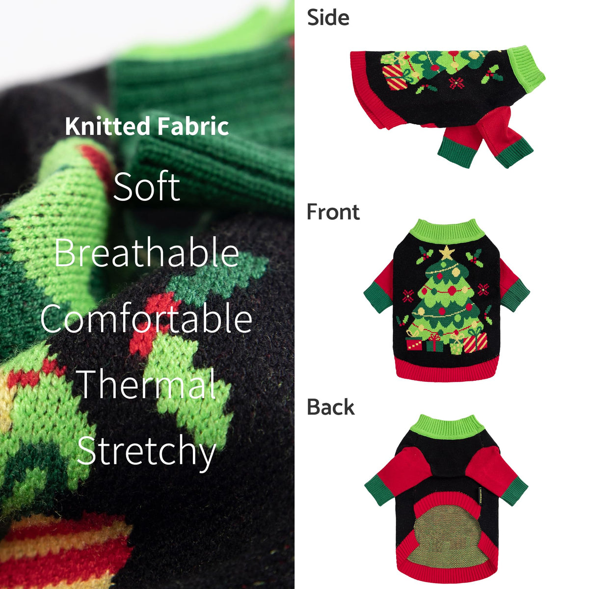 Fitwarm Christmas Tree Dog Sweater, Thermal Dog Winter Clothes For Small Dogs Boy Girl, Cozy Dog Christmas Outfit, Doggy Pullove