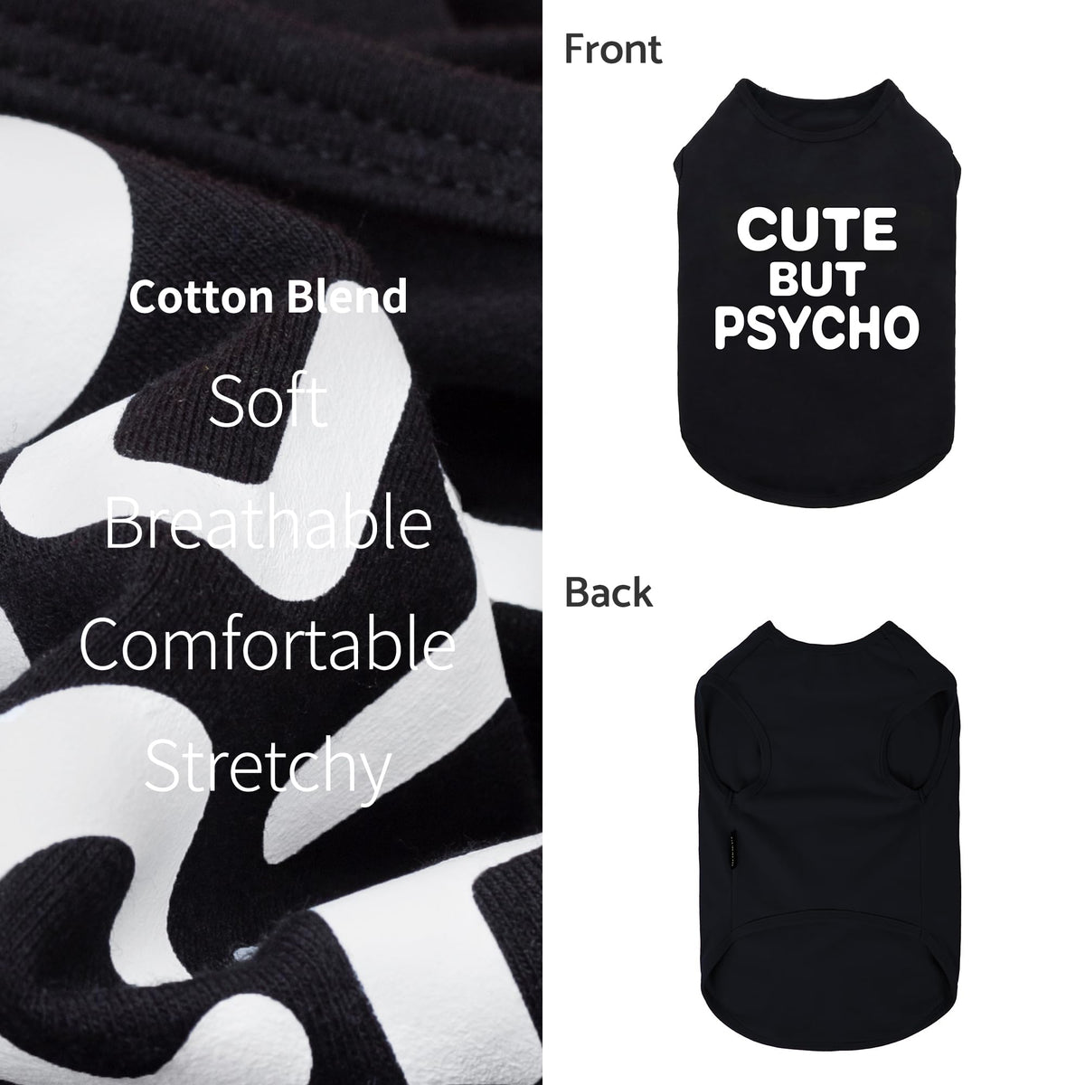 Fitwarm Cute But Psycho Dog Shirt, Summer Clothes For Small Dogs Boy Girl, Funny Pet Outfit, Black, White, Small