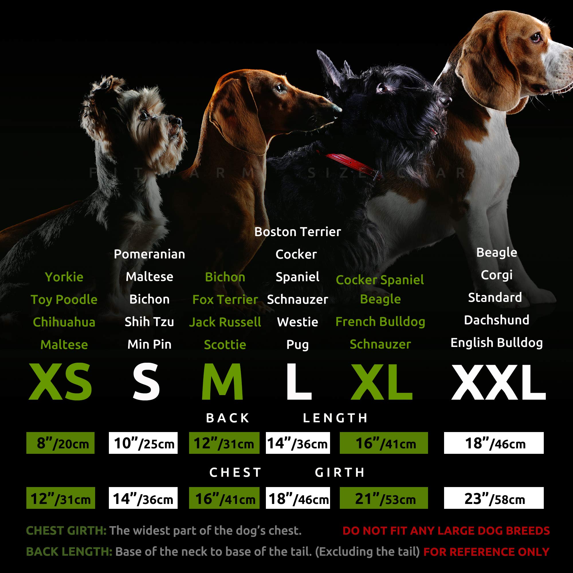 *Measuring Your Dog For A Perfect Fit*1.How To Measure Your Dog?Please Check The Size Chart In The Photo Gallery Above.&Nbsp;2.Your Baby Usually Wears Size S Doesn'T Mean All Size S Will Fit Him/Her.You Looked At One Size Chart And Found That Your Dog Is A Size Small. But That Doesn'T Mean He/She Is A Size Small For All The Clothes. Different Designers And Manufacturers Use Their Own Size Charts. So The Measurements Given In A Size Small By Manufacturer &Quot;A&Quot; Will Be A Size Xs In Manufacturer B'S Size Chart. Don'T Buy A Particular Size Because That Is What You Always Buy In A Pet Shop Or Online Store. Always Look At The Size Chart For Chest Girth And Length And Confirm The Size Before You Commit To Buy.3.If Any Of The Measurements Are 'Between' Two Sizes, Choose The Larger Size.If Your Measurements Are Toward The Upper End Of The Range Given For A Particular Size, You May Also Want To Choose The Larger Size, As You May Also Wish To Do For Heavily Coated Dogs To Accommodate All That Fur.9.Take Each Measurement A Bit Loosely.Take Each Measurement A Bit Loosely, So There Will Be Room For Your Dog To Move And Breathe, But Not Too Loose. (The Measurement For Belly Bands Is The Exception -- It Needs To Be A Bit Snug)Please Measure Carefully Before Buying And Email Us If You Have Any Questions About Fit Before You Bid Or Make A Purchase.*About Fitwarm*Fitwarm Is A Registered Trademark Of Designer Pet Clothing.We Design And Produce Pet Clothing Ourselves As A Manufacturer,Fully Control Every Single Part Of The Production To Make Sure We Can Offer The Highest Standard Products To Every Furbaby.