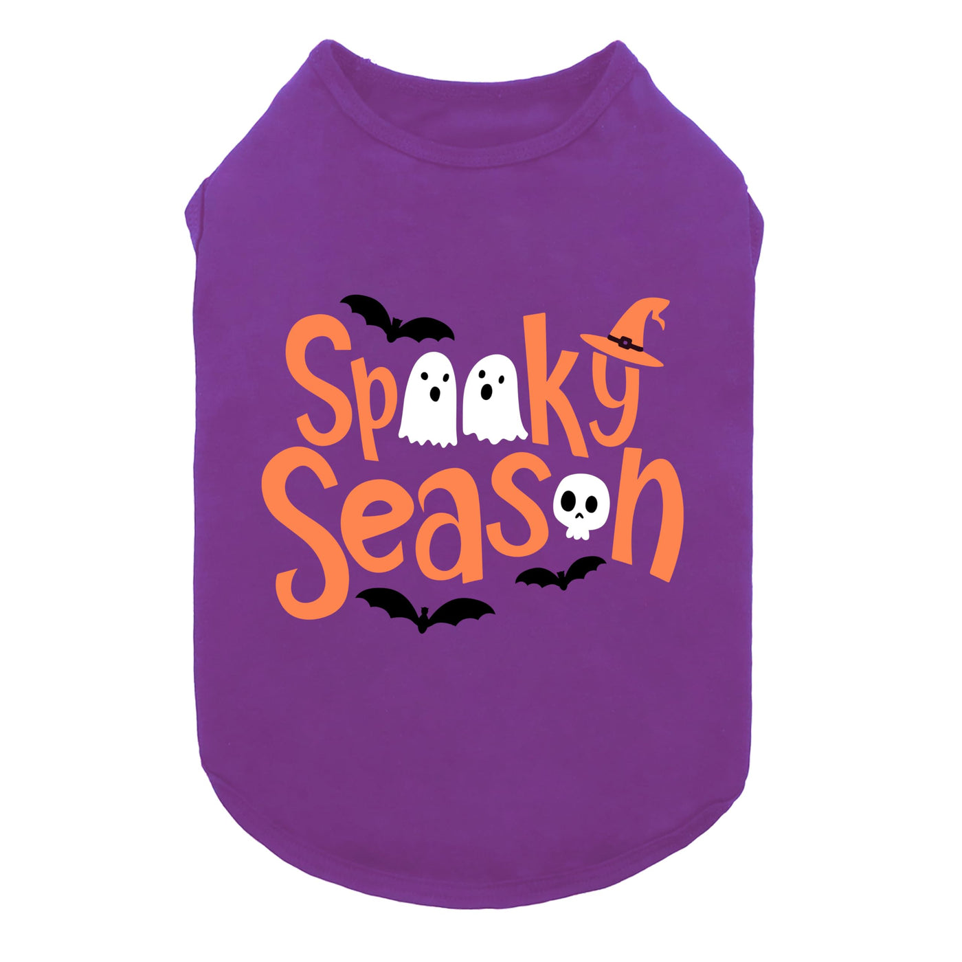 Get Ready For Halloween Fun With Our 'Spooky Season' Dog Halloween Shirt! This Bright Purple Shirt Features Cute Ghost, Bat, And Skull Patterns, Making It The Perfect Addition To Your Pets Halloween Wardrobe. The Playful 'Spooky Season' Lettering Captures The Festive Spirit, Ideal For Funny Dog Outfits That Are Meant To Bring Smiles. Made From Soft, Breathable Fabric, It Ensures Your Pet Stays Comfortable During All Your Halloween Celebrations. Let Your Dog Show Off Their Halloween Spirit In Style With These Cute Dog Halloween Costumes!
