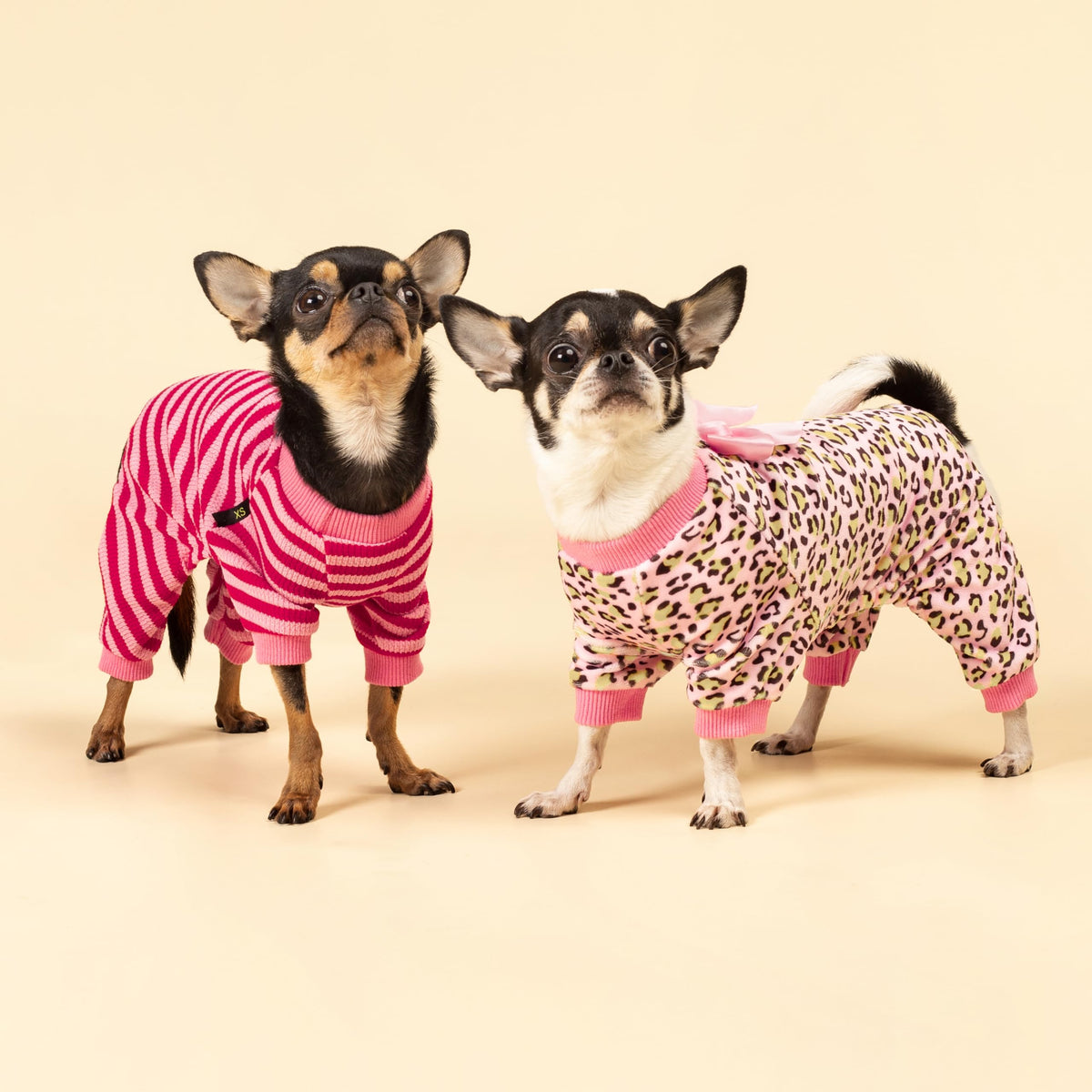Fitwarm Leopard Dog Pajamas, Fleece Dog Clothes for Small Dogs Girl with Legs, Pet Onesie, Cat Outfit, Pink, Medium