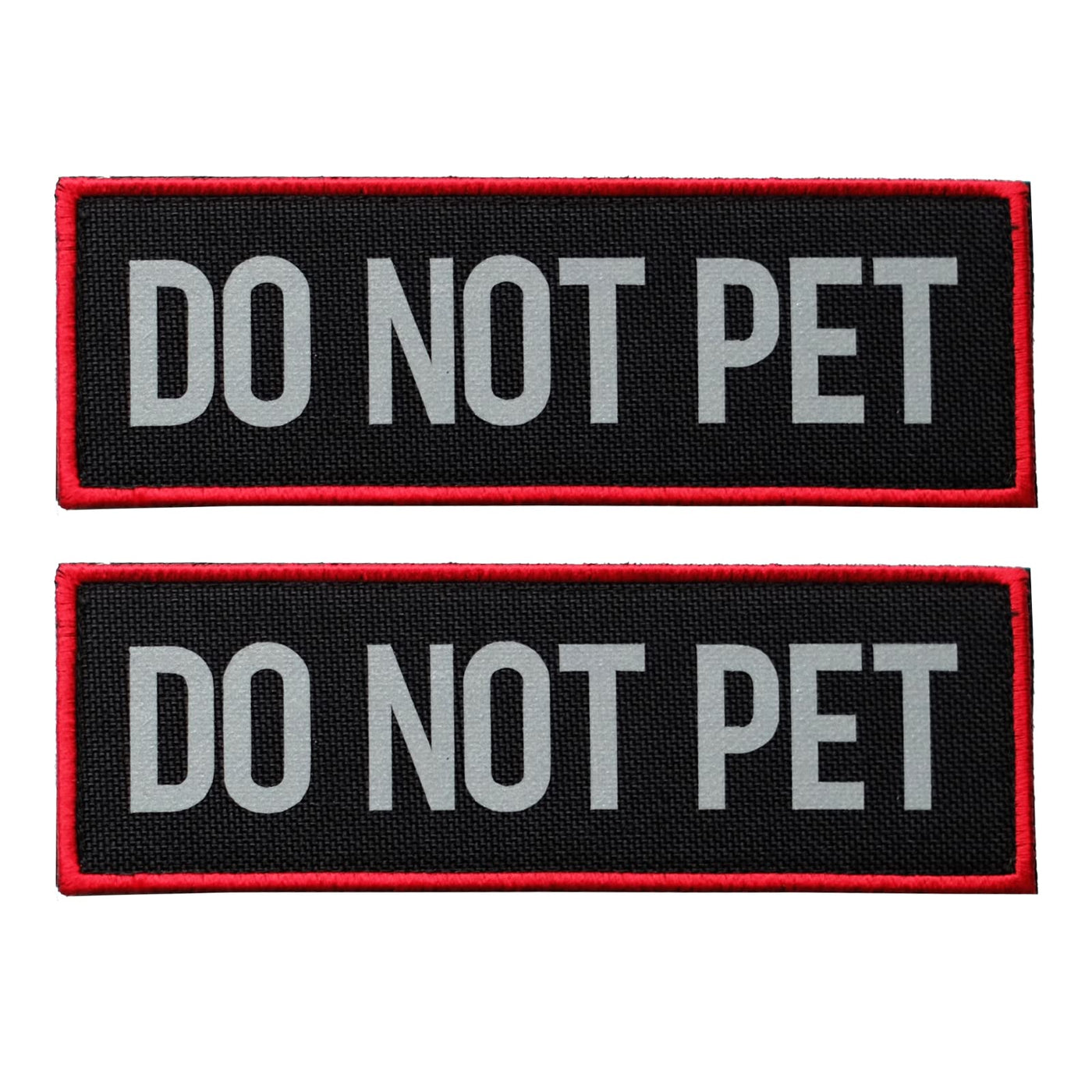 FITZNORA 2 Pcs Reflective Do Not Pet Patch with Hook and Loop Backing, Embroidered Border with Printed Lettering Patch for Dog V