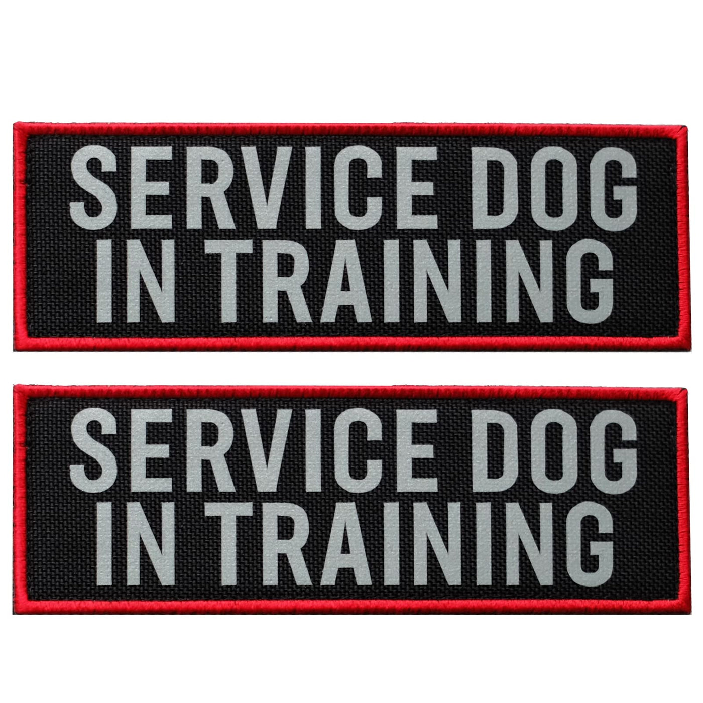 FITZNORA 2 Pcs Reflective Service Dog in Training Patch Set with Hook and Loop Fastener, Embroidered Border with Printed Letters