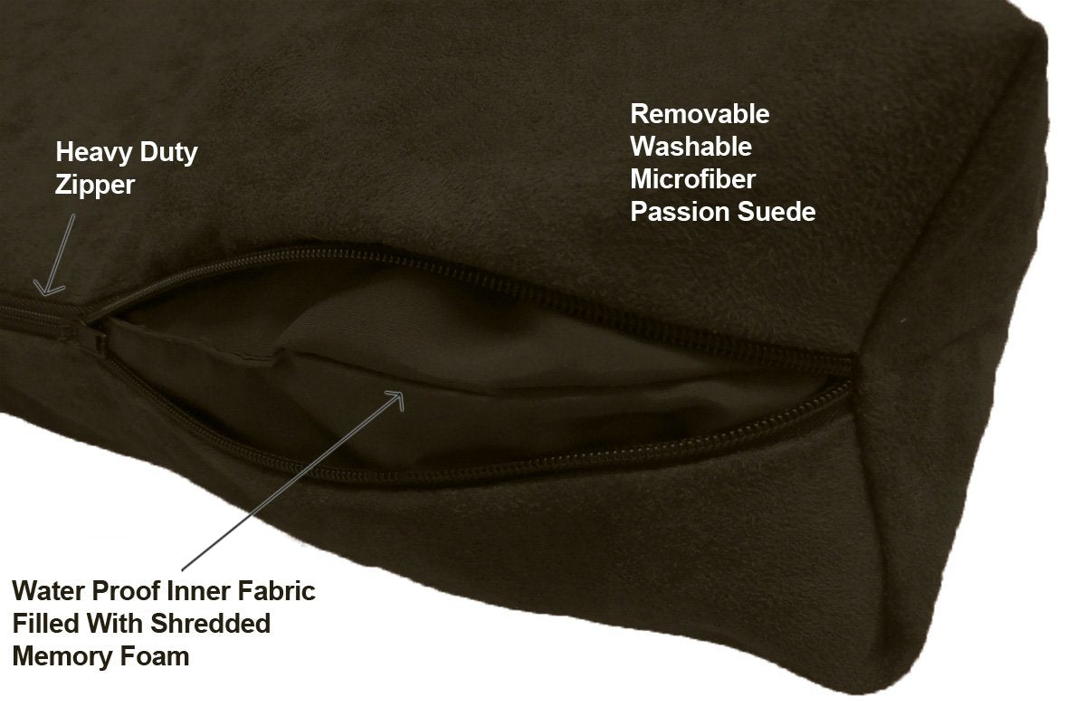 Removable Machine Washable Dog Bed Cover with Microfiber Passion Suede Cover with Heavy Duty Zipper. Passion Suede Fabric is a soft type of fabric that is both ultra durable and very easy to clean Double Sided Dog Bed.