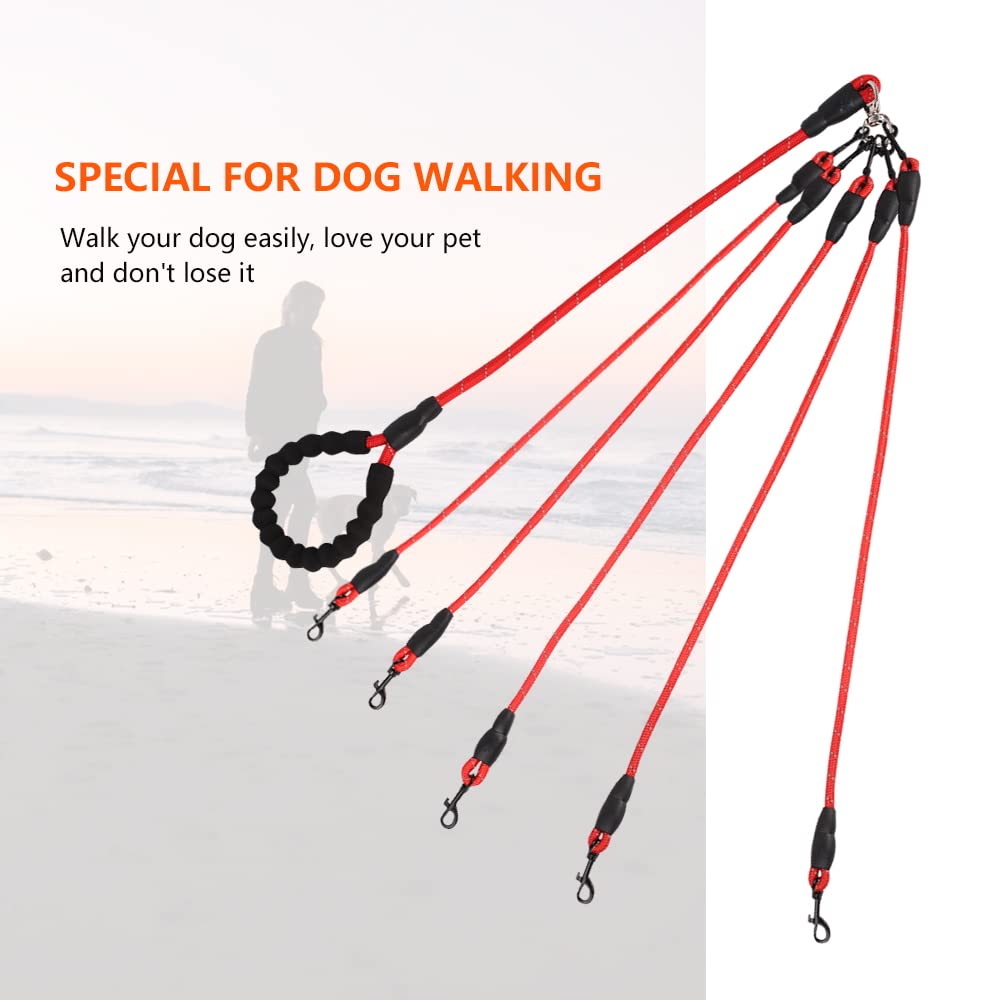 Five Dog Leash,Comfortable 5 Dog Leash With Reflective,360 Swivel No Tangle Five Dog Training Leash,For Large Medium Small Dogs