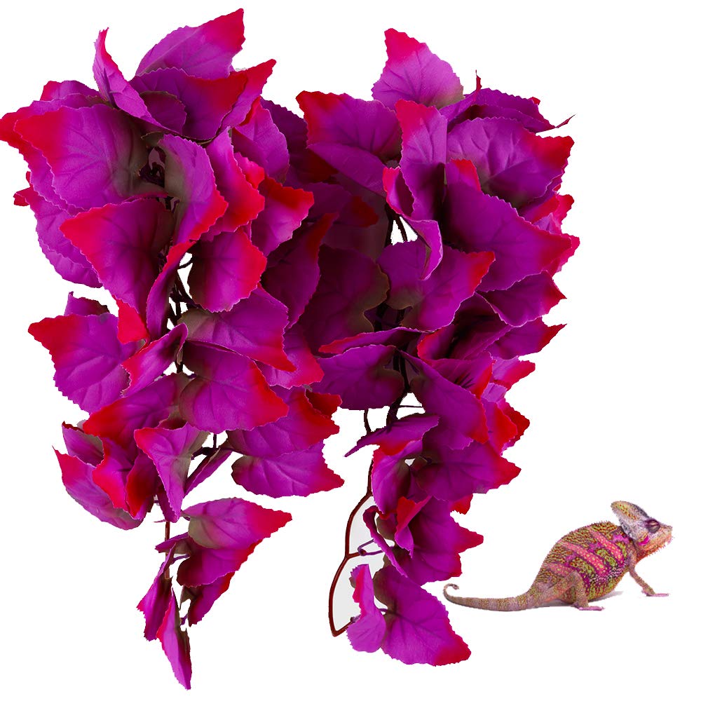 FiveBull 2 Pack Realistic Silk Hanging Plants for Reptile Terrarium, Non-Toxic Artificial Pink Decor, Safe Habitat for Bearded D