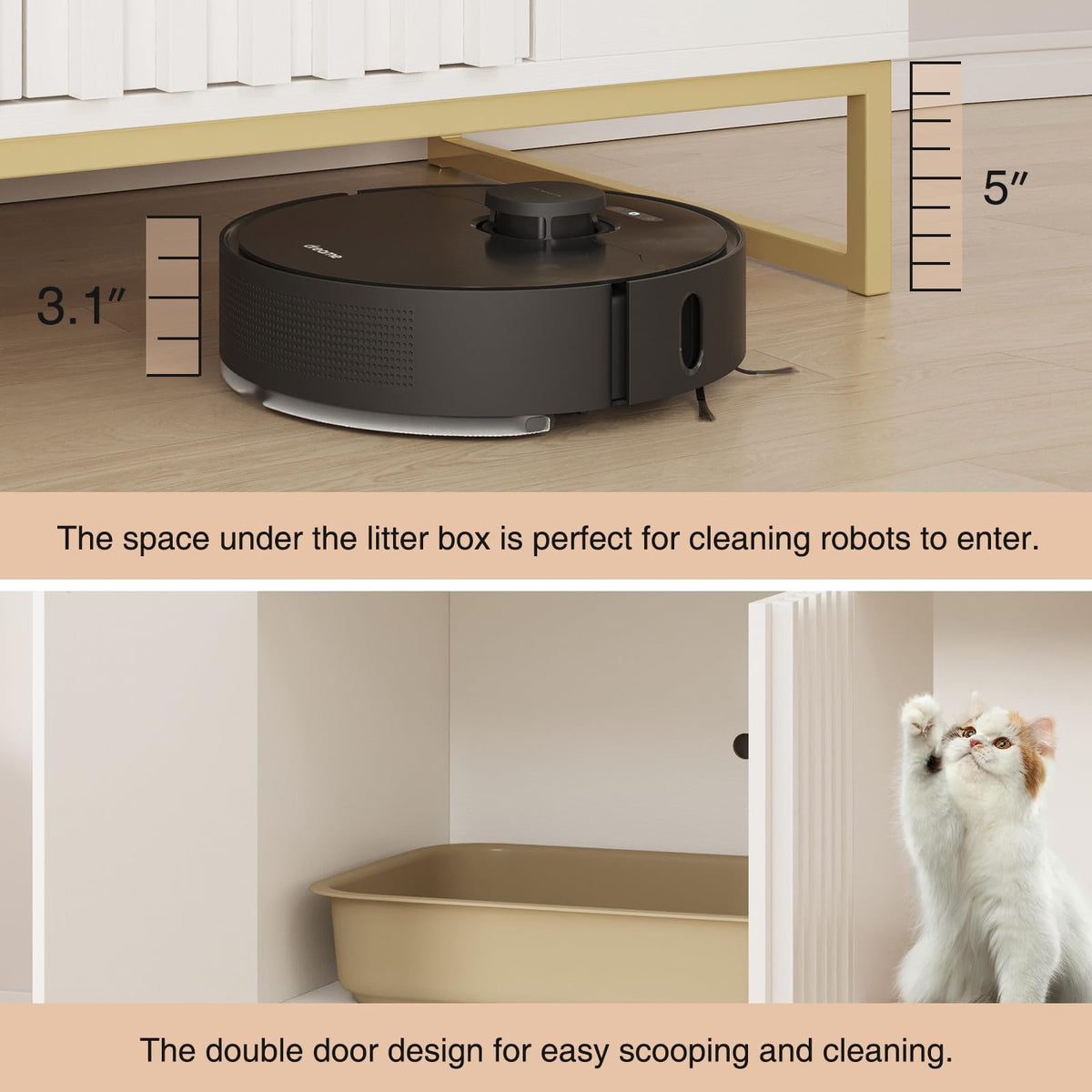 Fivewillowise Litter Box Enclosure, Modern Fluted Hidden Litter Box Furniture,Cat Litter Box Enclosure With Scratching Mat,Cat H