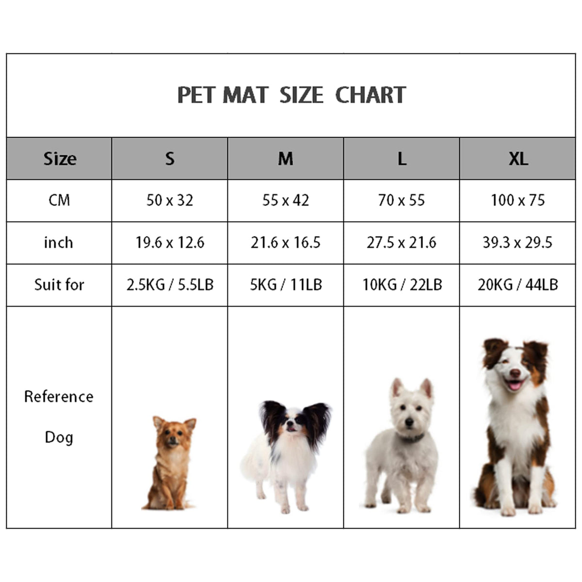 Specifications: Varied colors and sizes for your choices Size: Size S: 50 x 32 cm / 19.6 x 12.6 inches, suitable for pets within 2.5 kg / 5.5 lb Size M: 55 x 42 cm / 21.6 x 16.5 inches, suitable for pets within 5 kg / 11 lb Size L: 70 x 55 cm / 27.5x 21.6 inches, suitable for pets within 10 kg / 22 lb Size XL: 100 x 75 cm / 39.3 x 29.5 inches, suitable for pets within 20 kg / 44 lb