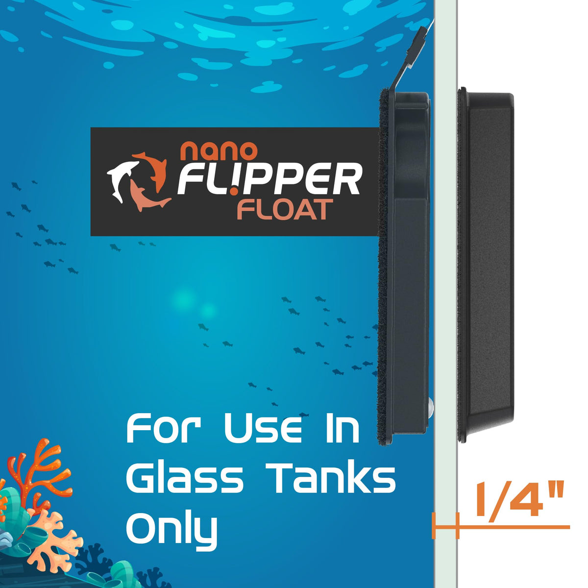 Q: What tanks is the FL!PPER Flipper Cleaner Float suitable for?A: The FL!PPER Flipper Cleaner Float is designed for use in glass tanks with a thickness of up to 1/4" (6mm) and is suitable for aquariums up to 25 gallons. For larger tanks, consider the Floating Flipper Standard or Max models.