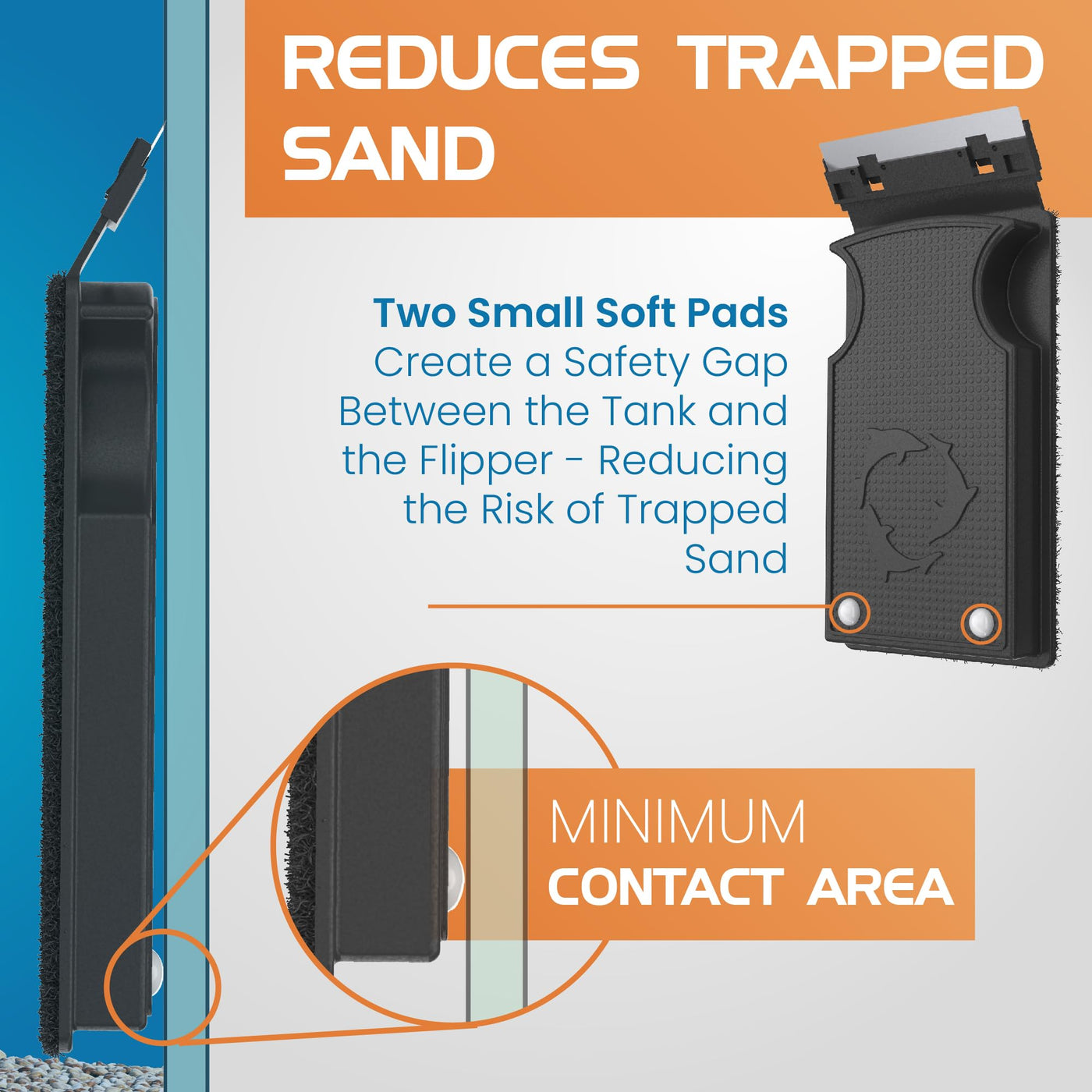 Q: Is the Flipper Cleaner safe for my aquarium's glass?A: Yes, the Flipper Cleaner is designed with safety in mind. It has only three contact points that create a safety gap between the cleaner and the glass, minimizing the risk of scratching while effectively cleaning algae.