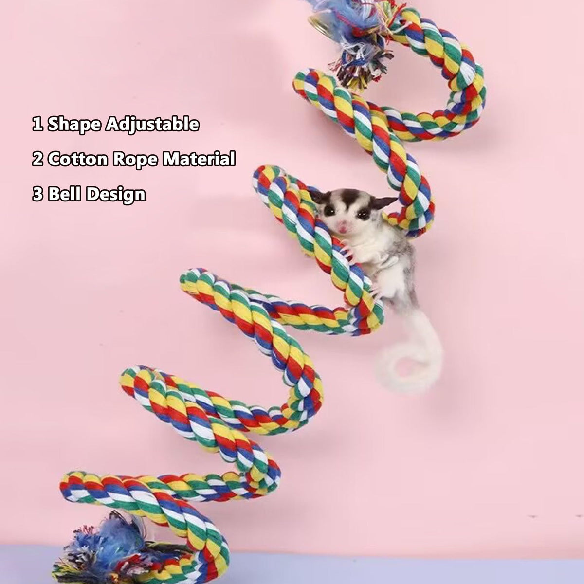 Product Name: Sugarl Glider Climbing Toy Color:Colorful Material:Cotton Rope+Steel Wire Size : Length:59Inch, Suitable For Sugar Gliders, Ferrets, Rats, Mice, Squirrels, And Small Birds Such As Parrots Etc. Packing:1* Toys Feature: Helps Reduce Boredom In Small Animals And Provide Your Pet With Hours Of Playtime Fun Suit For Sugar Gliders, Ferrets, Rats, Mice, Squirrels, And Small Birds Such As Parrots Etc. The Cotton Rope With A Wire Inside ,So It Can Be Straight Or Curled Easily, Adapts To All Types Of Cages Top Quality Material ,Which Is No Harm To Your Pet.