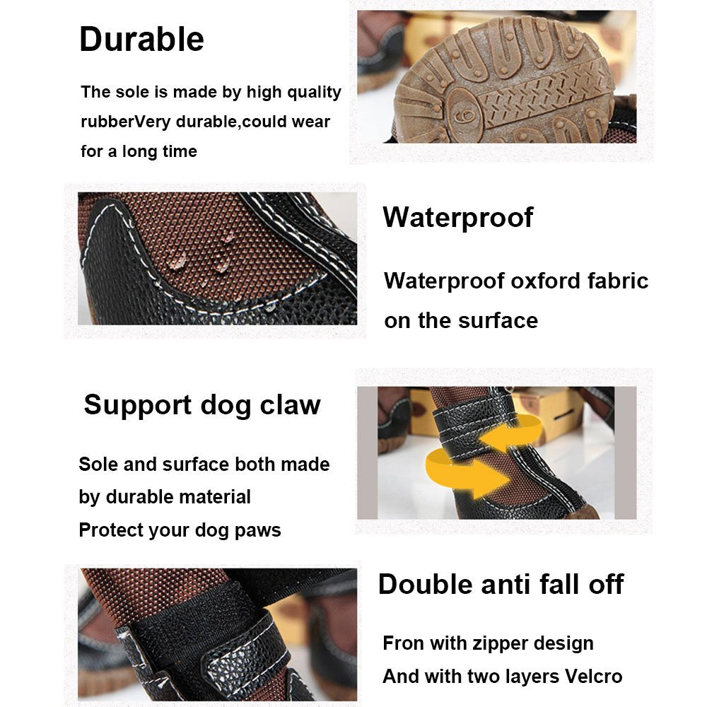 Fladorepet Large Big Dog Pu Leather Sport Shoes Winter Waterproof Pet Dog Puppy Martin Boots Non-Slip Pitbull Golden Retriever Rain Shoes (12(2.9X3.7Inch)(Pack Of 4), Brown)