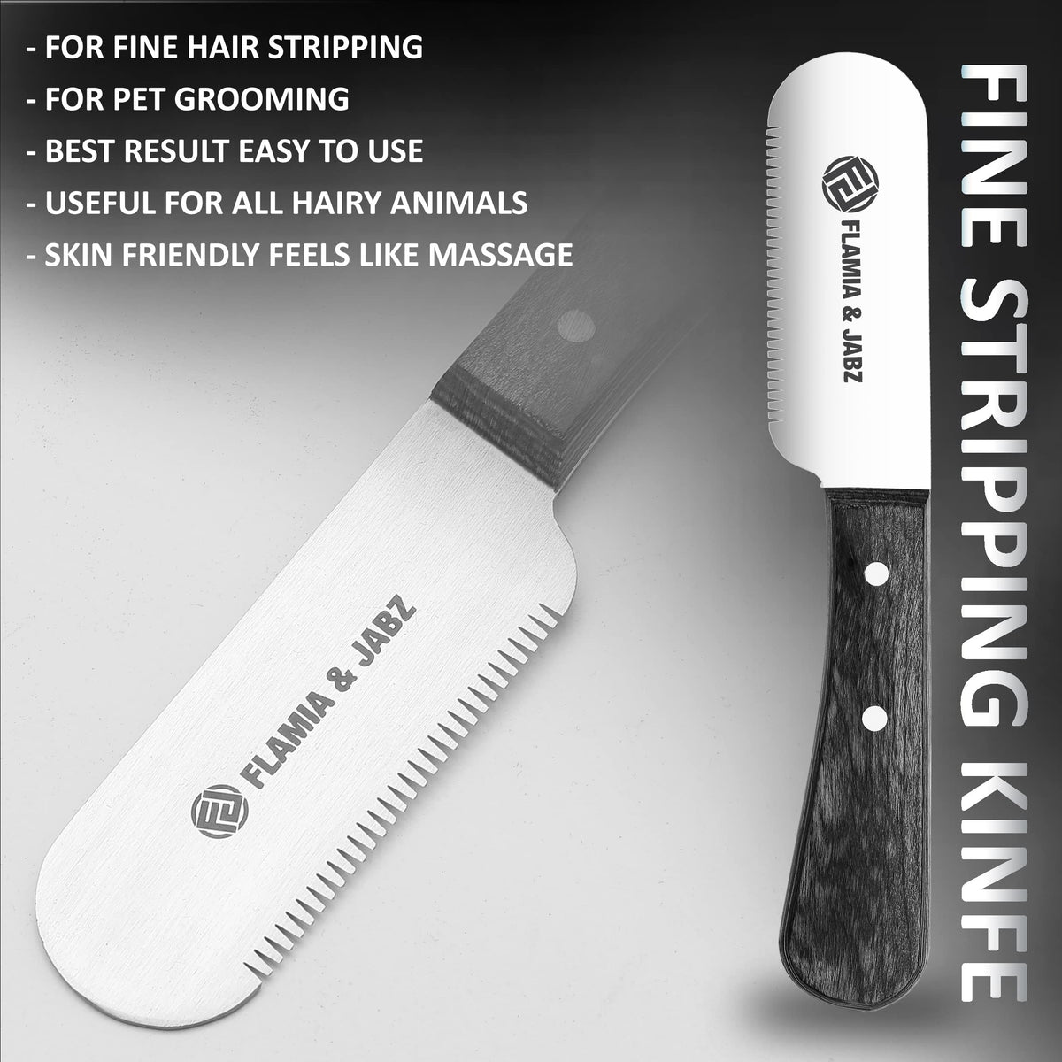Flamia & Jabz stripping knives are best for removing unwanted undercoat and useful for finish work to create a show stopper look for your pet.