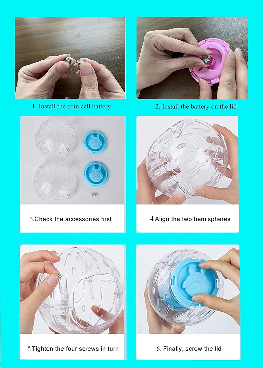 (1)If the pet is used for the first time, it will not run. It is recommended that you do not need to worry. You can leave the SS in the running ball for 1-2 hours, let the SS familiar, remember not to be reluctant, or it will aggravate the fear. After familiar with the toy, SS will gradually learn to avoid obstacles when he runs on the ground.