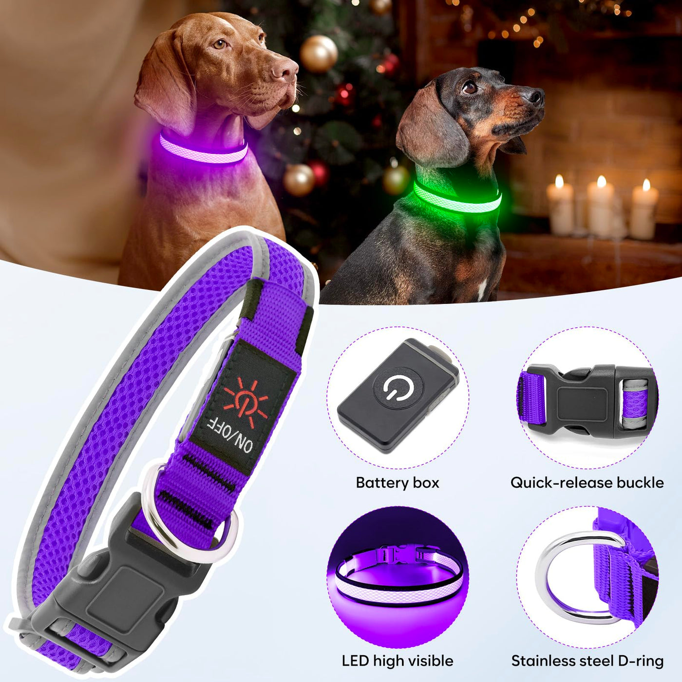 Flashseen Led Dog Collar, Light Up Dog Collar Light Usb Rechargeable, Adjustable Comfortable Soft Mesh Safety Dog Collar For Sma