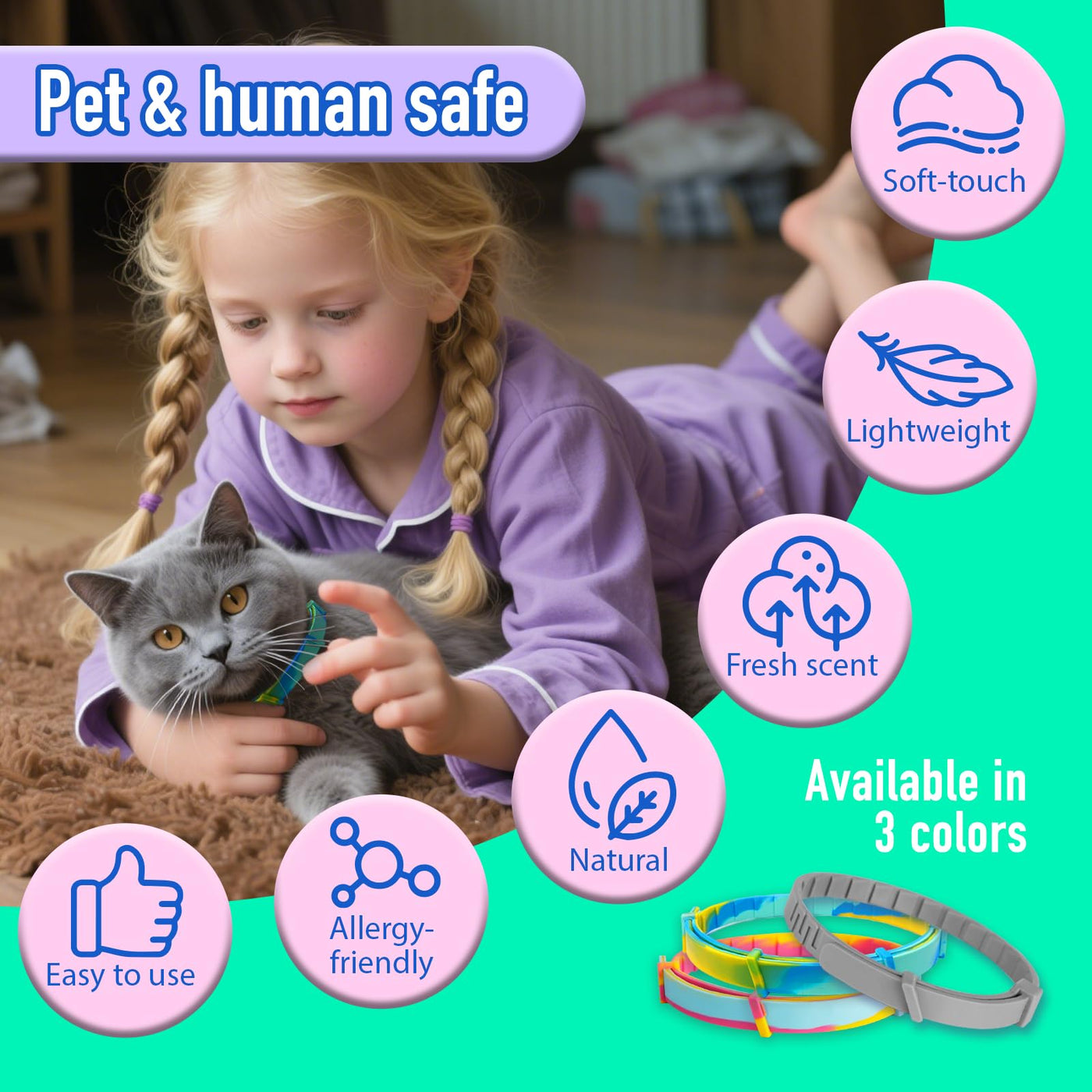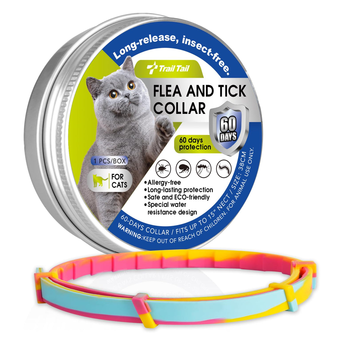 Flea and Tick Collar for Cats - Natural Essential Oil Formula, 60 Days Protection, Waterproof & Adjustable Flea Collar for Small, Medium & Large Cats (Rainbow, 1 Pack)