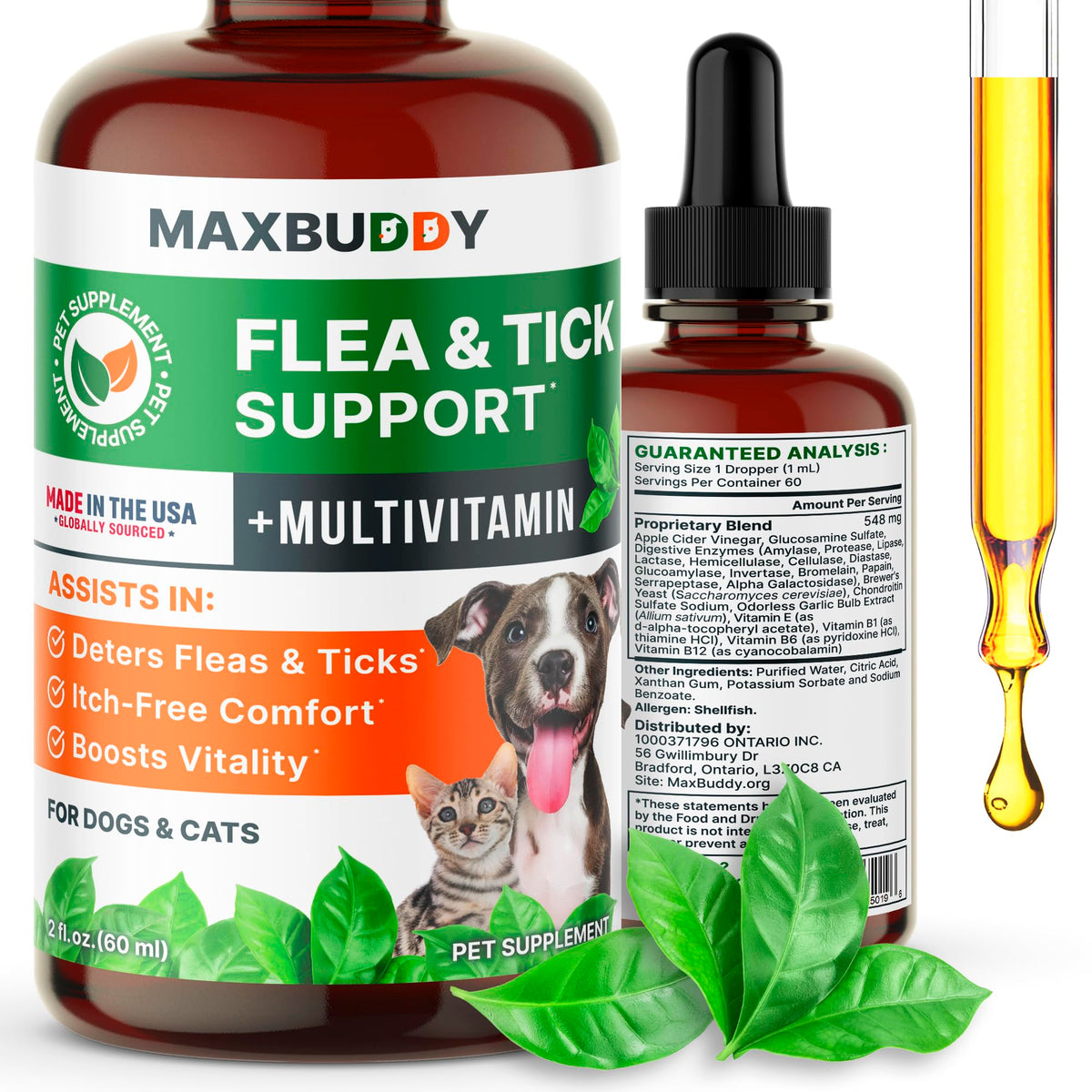 Flea and Tick Oral Prevention Support & Treatment for Dogs and Cats - Natural Flea Control with Multivitamin - Supplement Drops