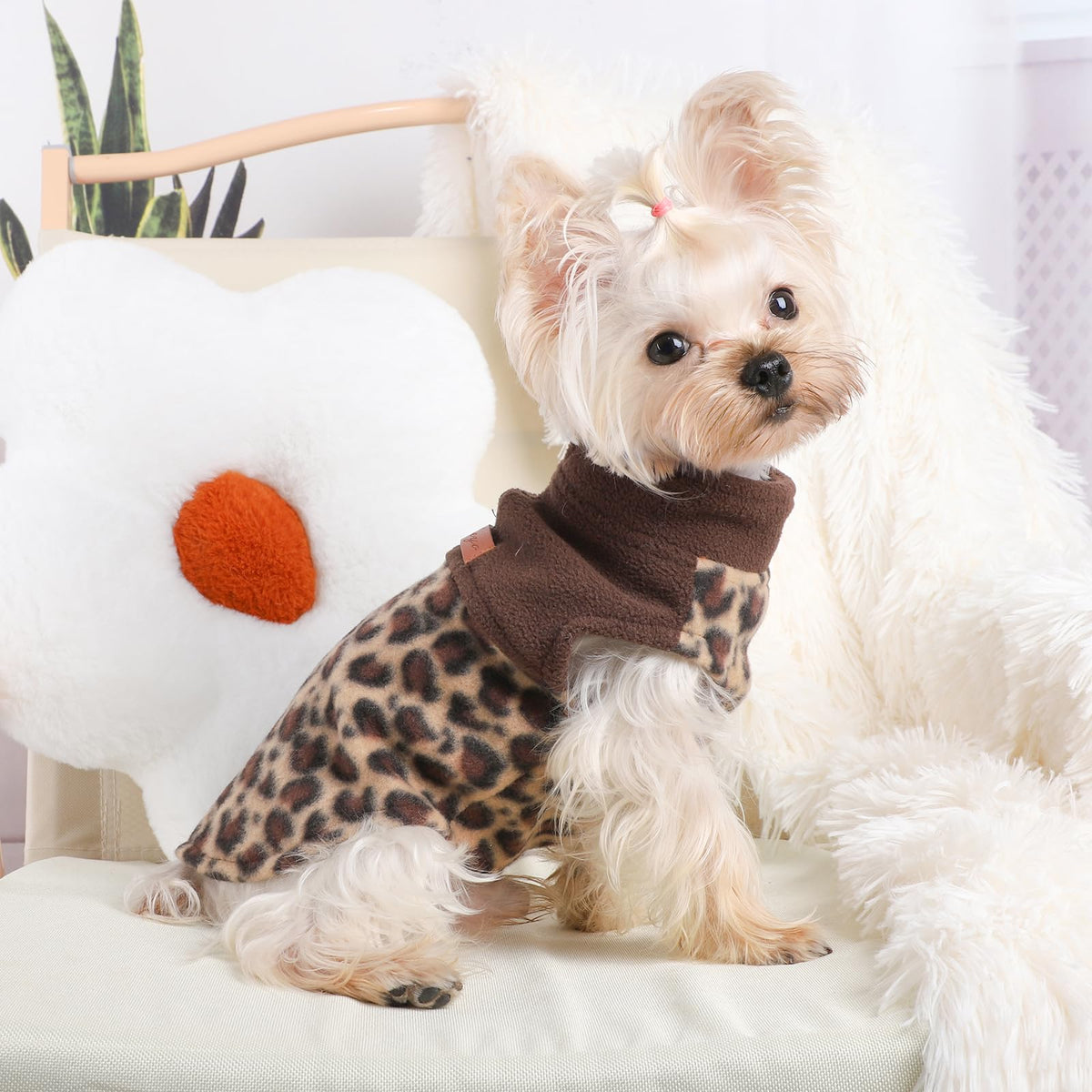 Fleece Vest Dog Sweater Leopard Dog Clothes For Small Dogs Boy Girl Warm Pullover Fleece Puppy Sweaters Winter Small Dogs Sweate