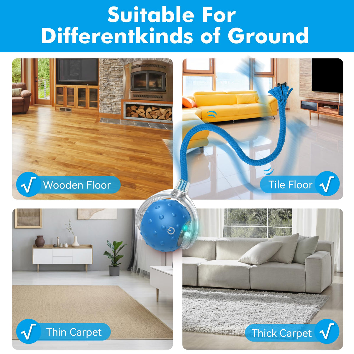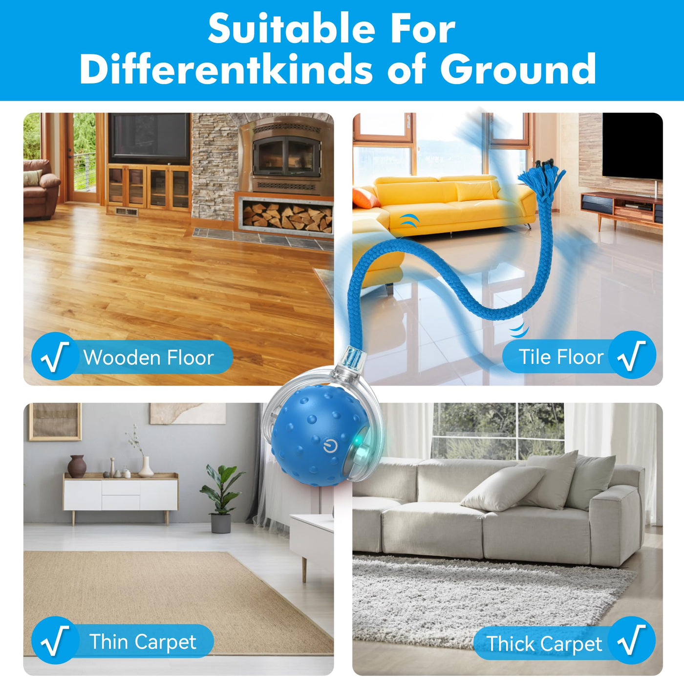 FLERDMAU Cat Toys Ball for Indoor Cats - Interactive Automatic Cat Ball Toy | Fast Rolling & Motion Activated Chirping | Hide and Seek Mouse Catching Game | Stimulates Hunting Instincts (Blue)
