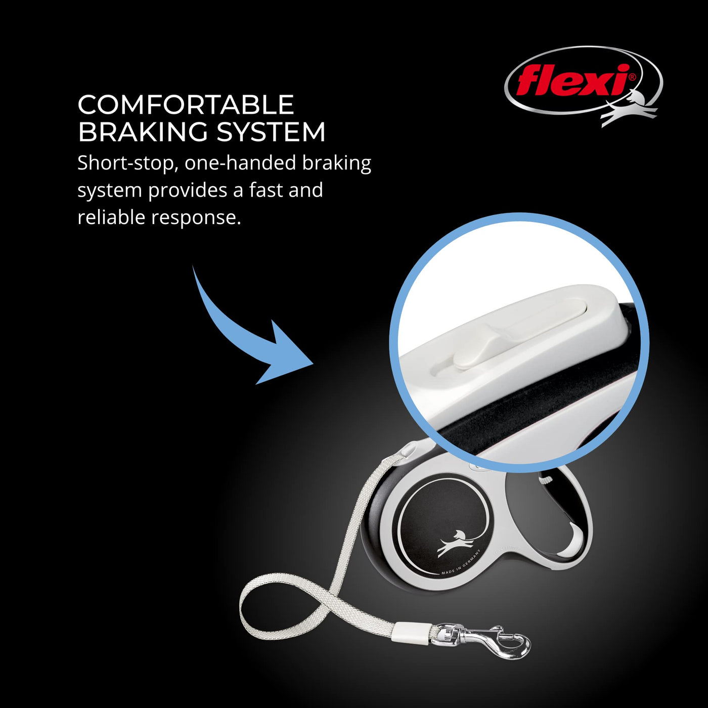 Flexi® New Comfort Tape Retractable Dog Leash For Large Dogs Upto 132 Lbs. – 16 Ft., Black/Grey | Tangle Free Pet Walking Leash With One-Handed Brake, Pause, Lock |German Quality Product