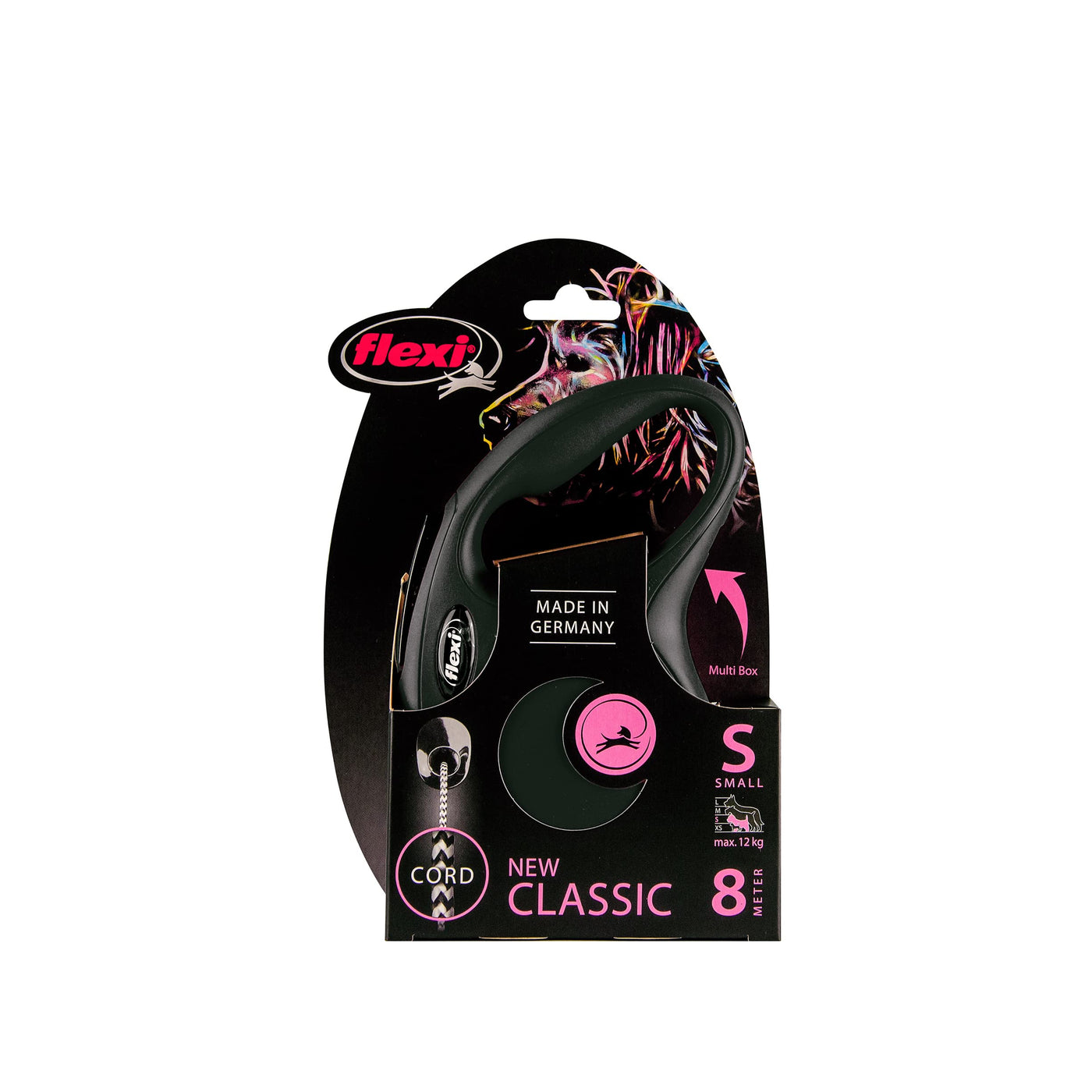 Flexi New Classic Cord Black Retractable Dog Lead Small 12Kg - 8M