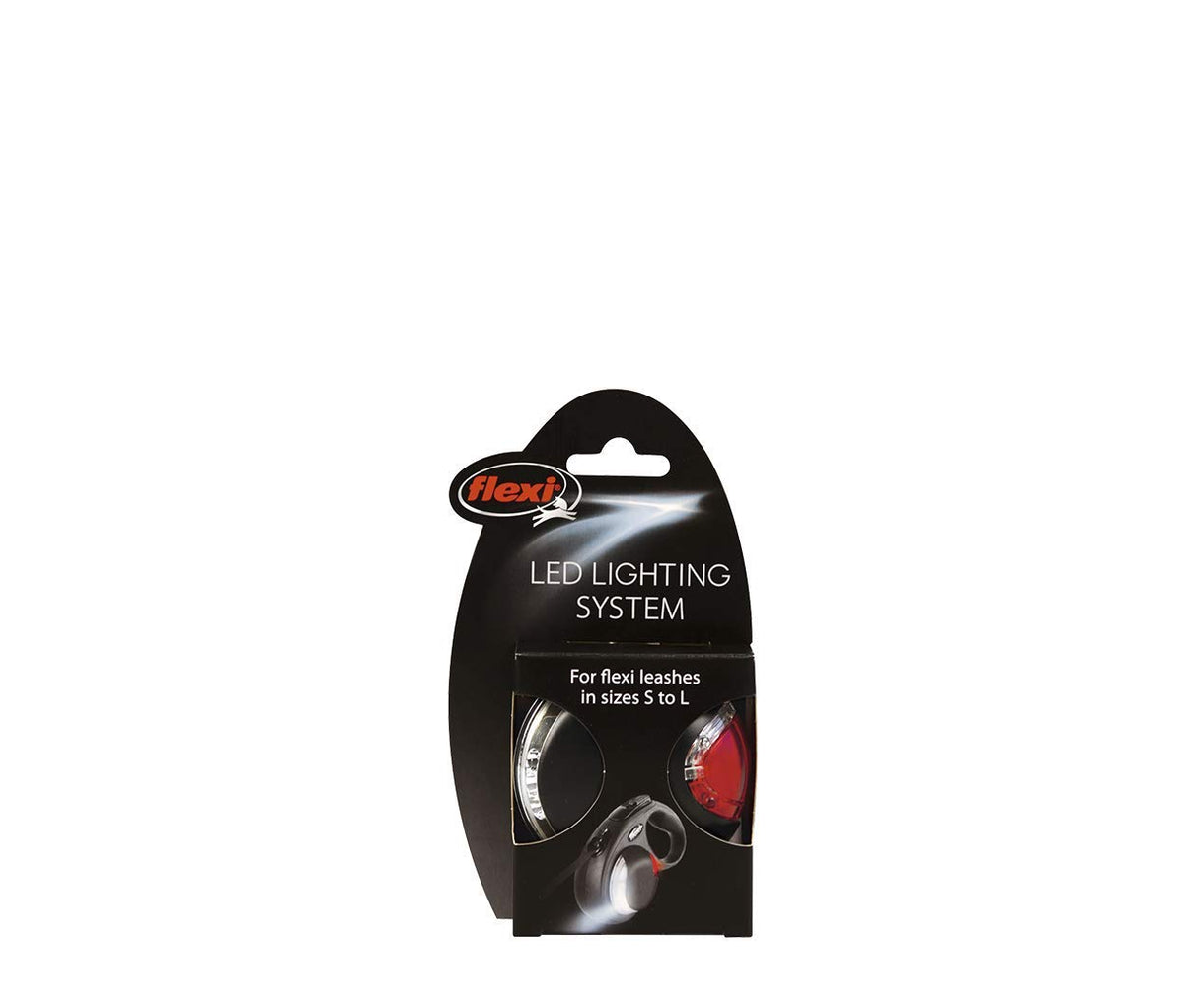 Q: What are the key features of the FLEXI New Comfort LED Lighting System?A: The FLEXI New Comfort LED Lighting System features an ultra-bright LED front light for maximum visibility during nighttime or early morning walks, along with a separate red rear light for added safety. It is designed for easy attachment on either side of the housing, making it suitable for both right and left-handed users.