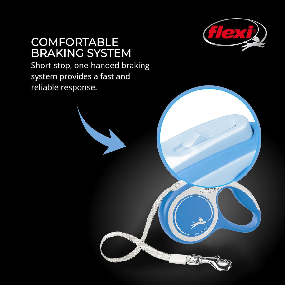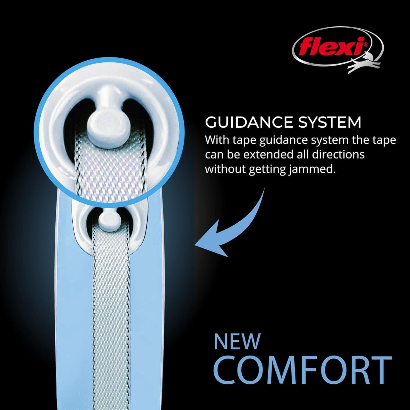 Flexi New Comfort Tape Retractable Dog Leashes For Small Dogs Upto 33 Lbs. - 16 Ft., Blue | Tangle Free Pet Walking Leash With O