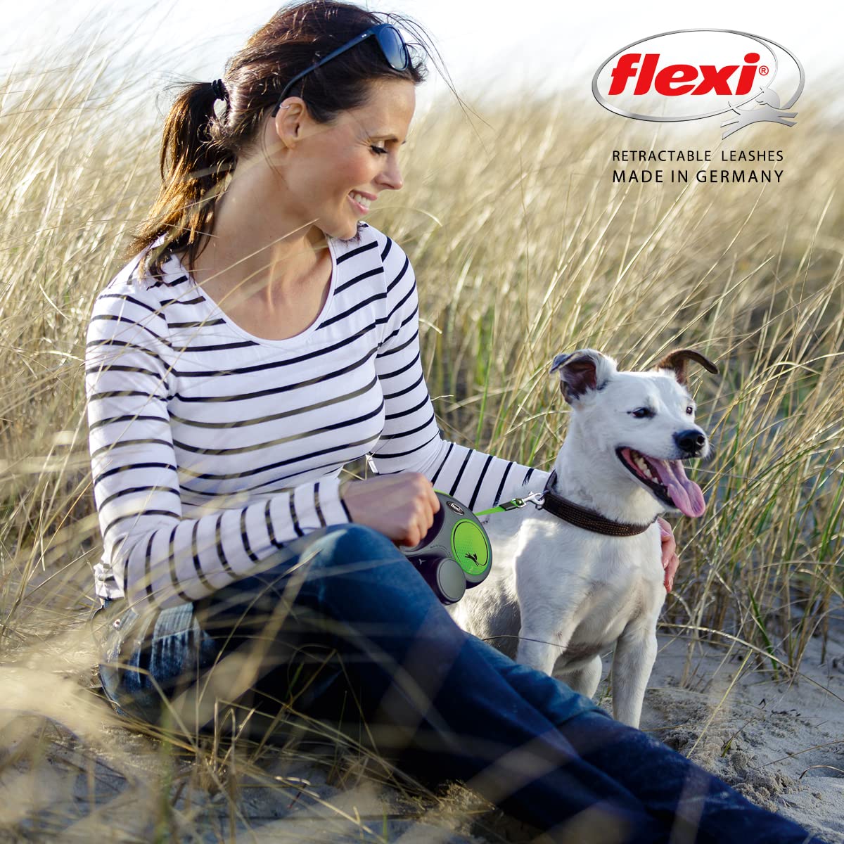 Flexi New Neon Tape Green Medium 5M Retractable Dog Leash/Lead For Dogs Up To 25Kgs/55Lbs