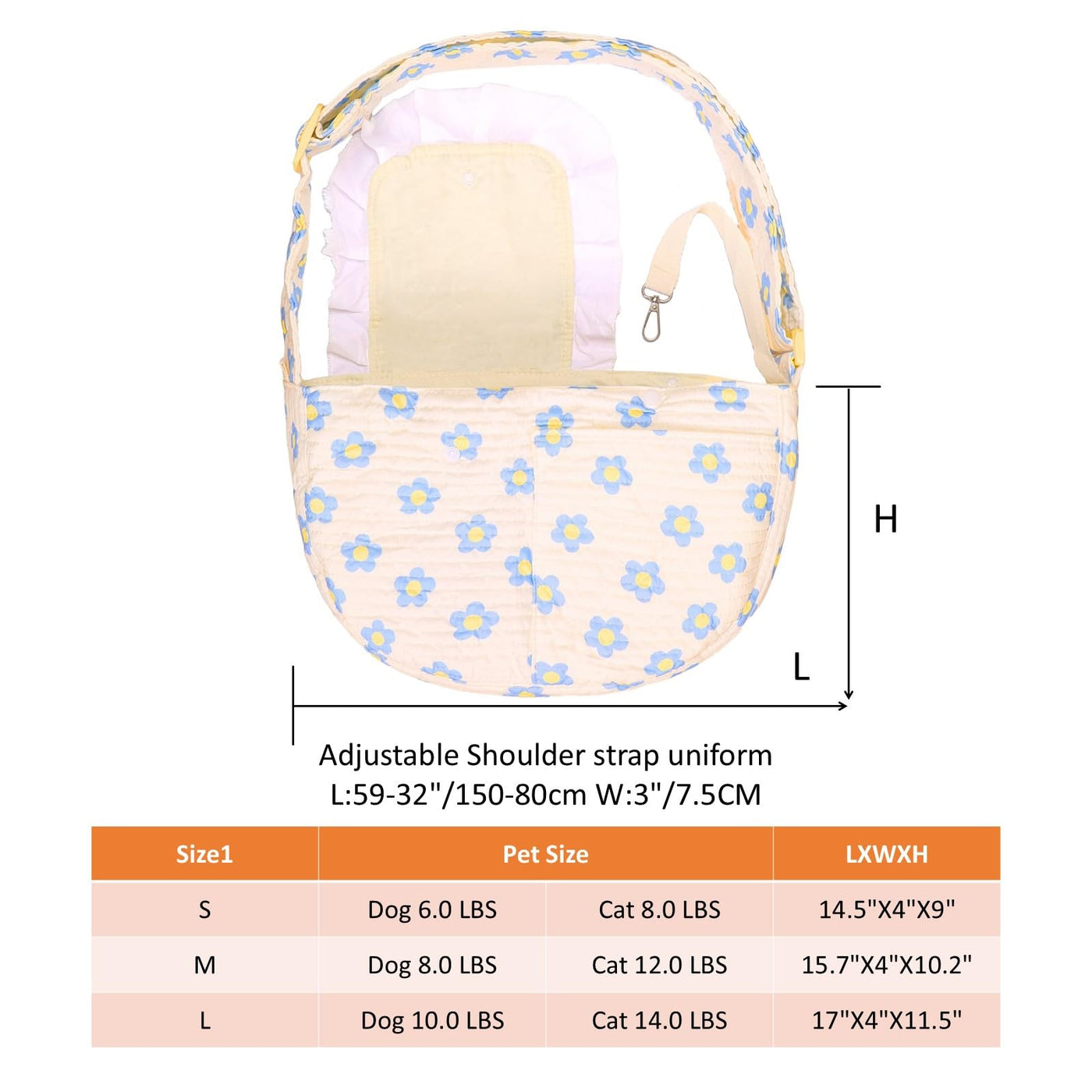 Floral Dog Carrier Bag for Cats & Small Dogs 3-15 LBS, Hands-Free Cat Sling with Adjust Strap & Pocket, Pets Sling Carrier Cross