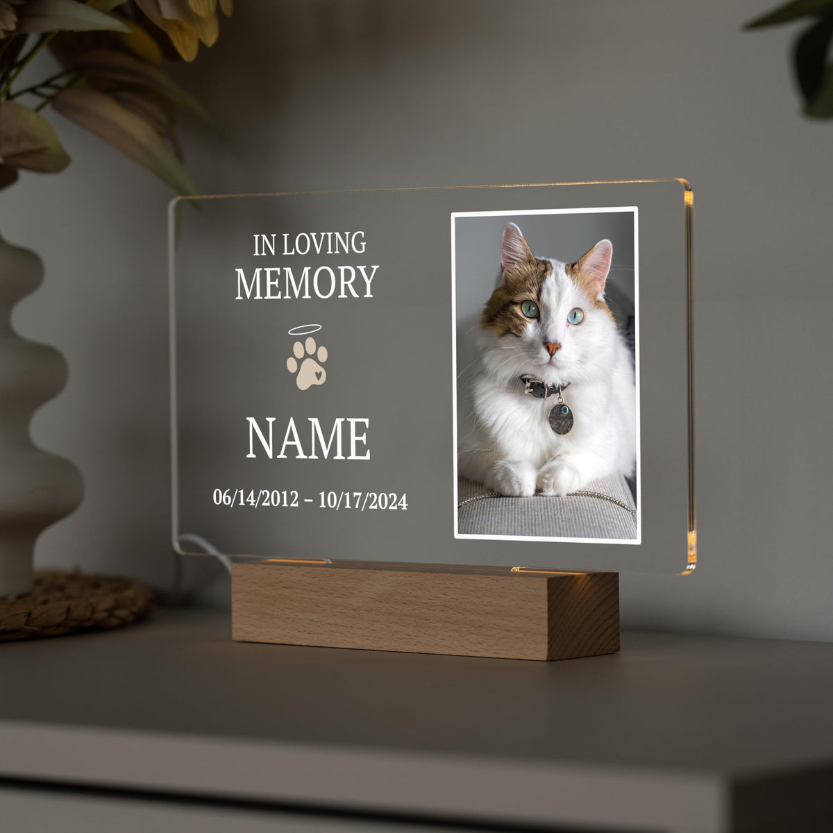 Florithings Cat Memorial Gifts/Memorial Gifts/Pet Memorial Stones/Personalized With Uv Printed Acrylic/Led Base For Perfect Ambi