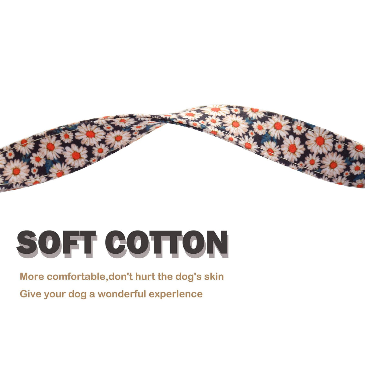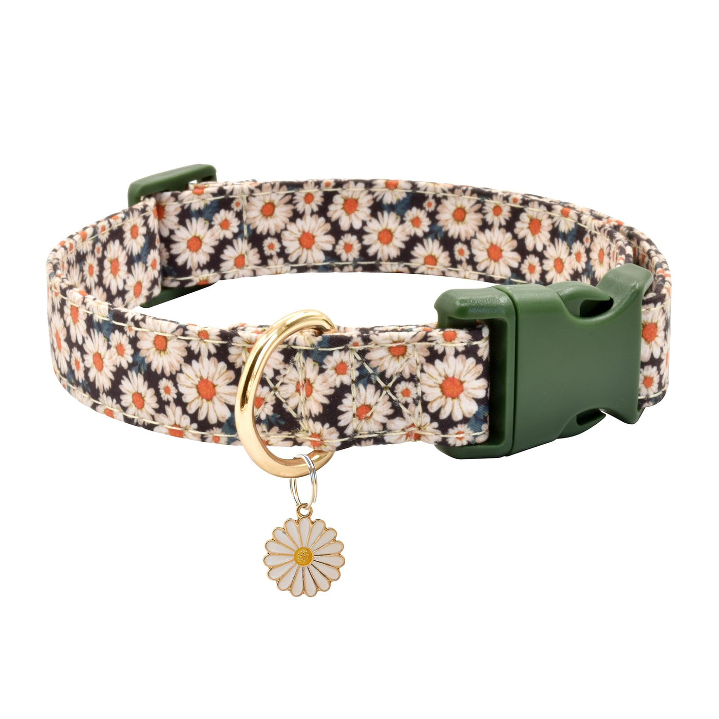 Flower Patterns Dog Collar With Accessories, Soft Cotton Dog Collars For Small Medium Large Female And Male Dog(Daisy M)