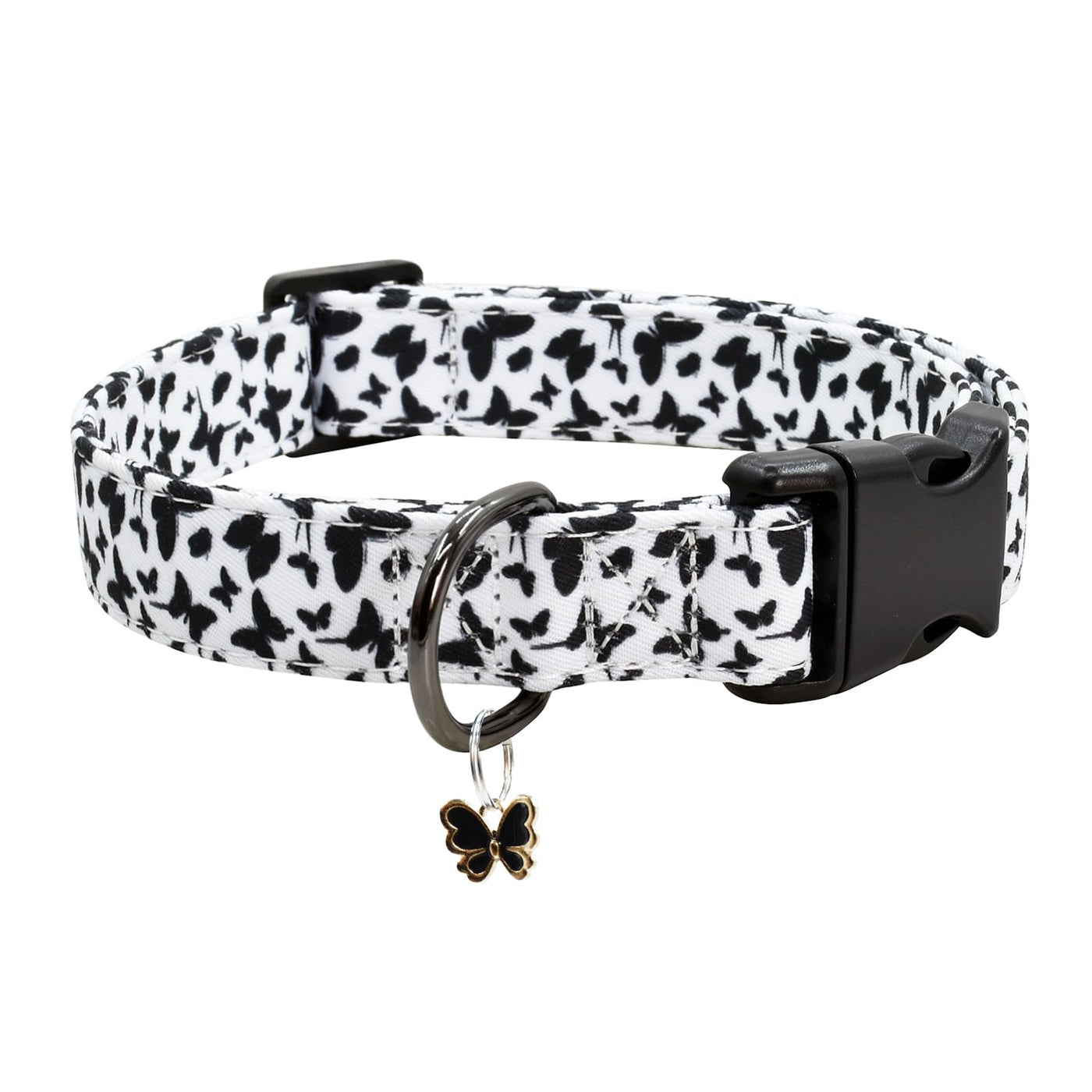 Flower Patterns Dog Collar With Accessories, Soft Cotton Dog Collars For Small Medium Large Female And Male Dogs(Butterfly M)